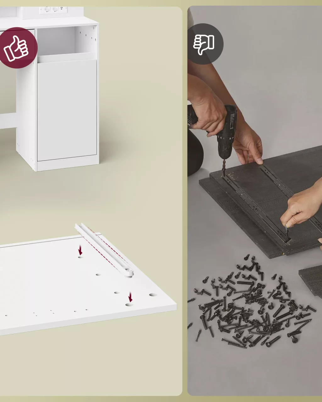 • Könnyű telepítés: Az eszköz nélküli csúszó sínek egyszerűen rákattinthatók az asztal testére, így gyorsan összeállítható.