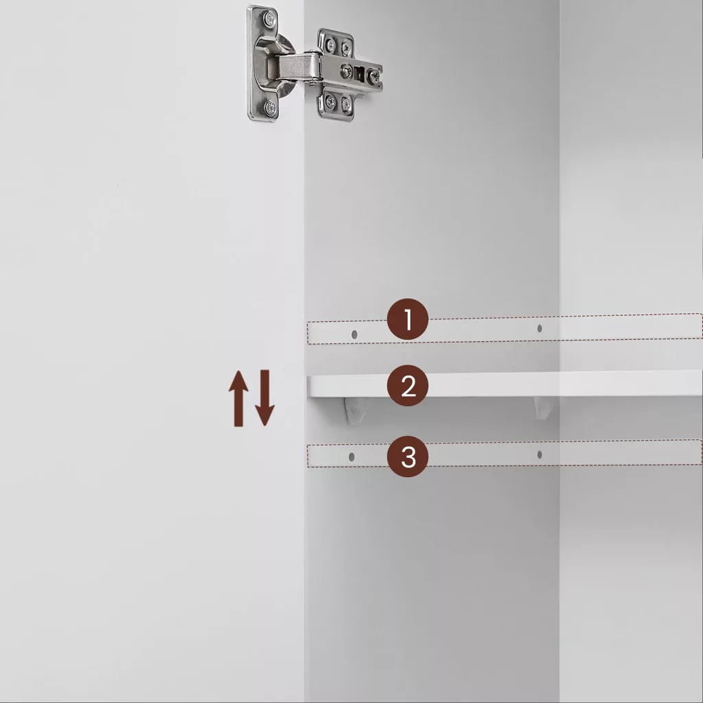 • Puha záródás: A szekrény puha záródású zsanérokkal van felszerelve, így elkerülheted az ajtók csapódását.