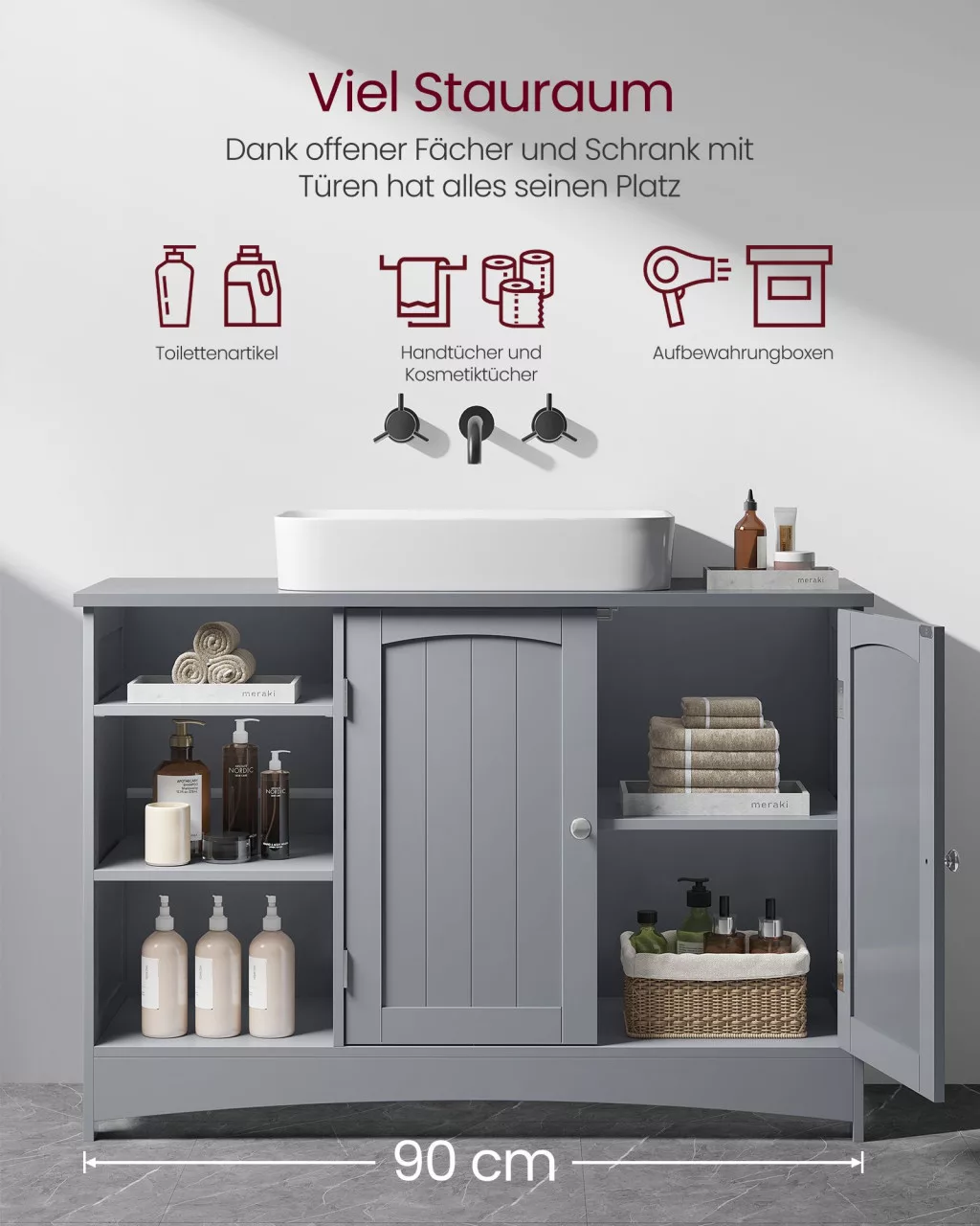 VASAGLE Mosdószekrény, Fürdőszobai Szekrény, Extra Hosszú, 30 x 90 x 60 cm, Kétajtós Fürdőszekrény