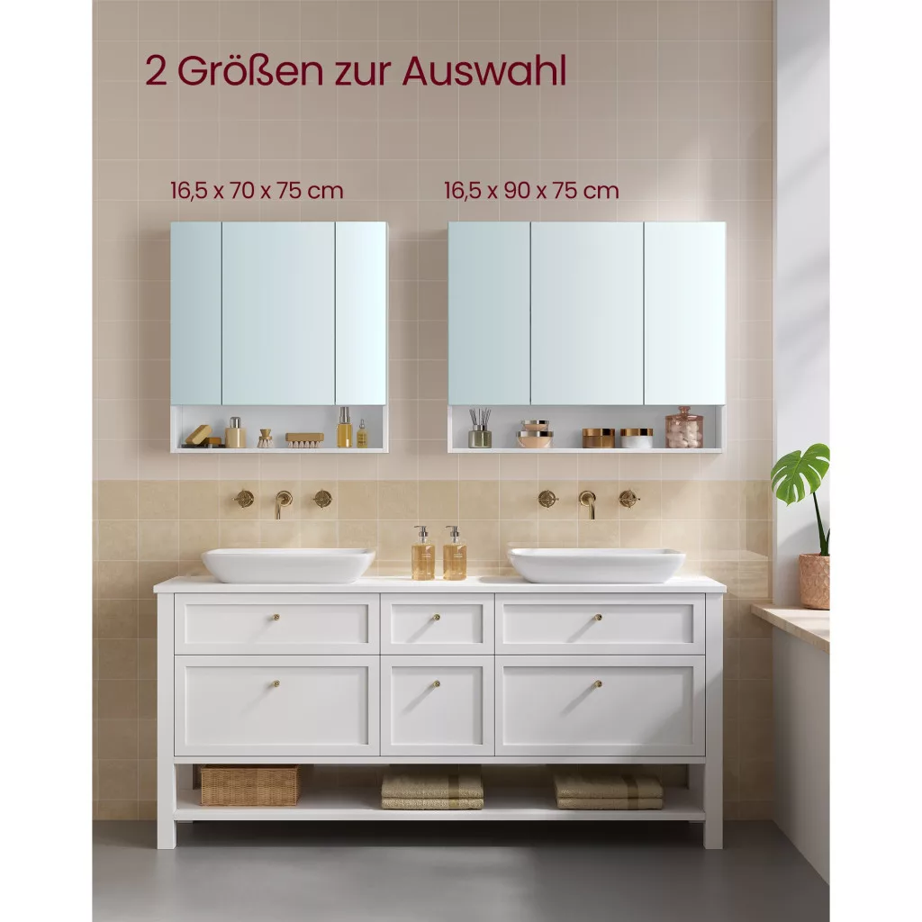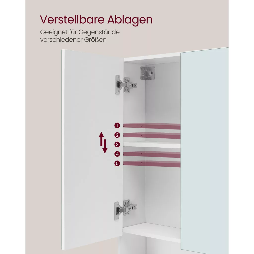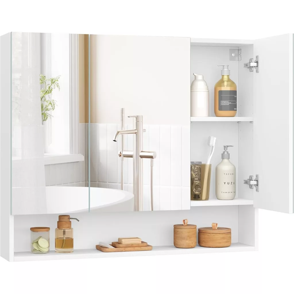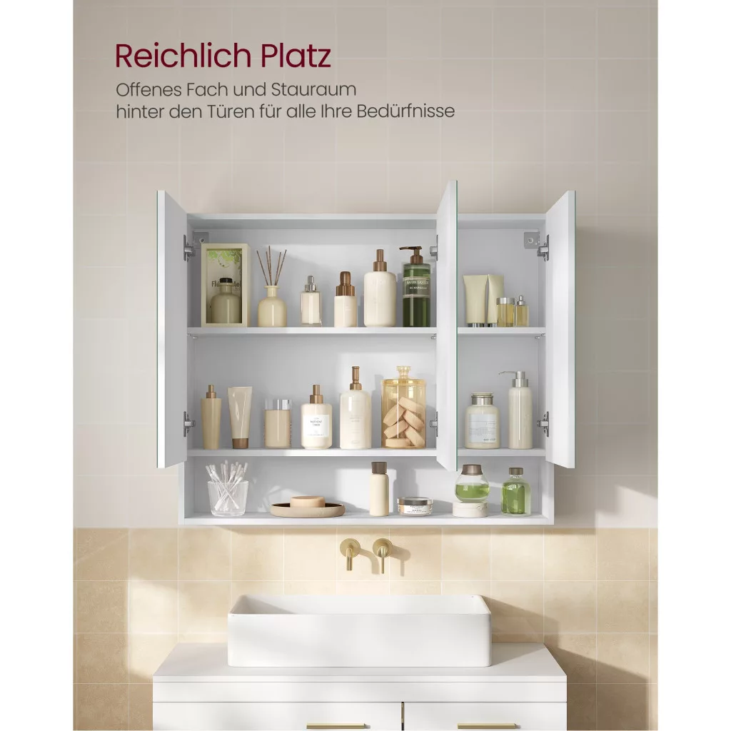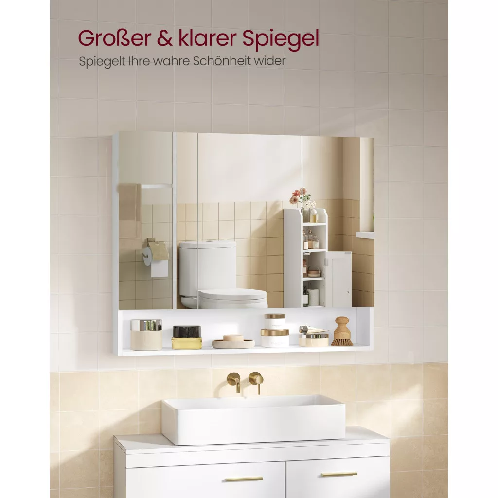 • Nagy tükör: A három tükörajtó széles és tiszta látványt biztosít, ami megkönnyíti a napi szépségápolási rutinját.