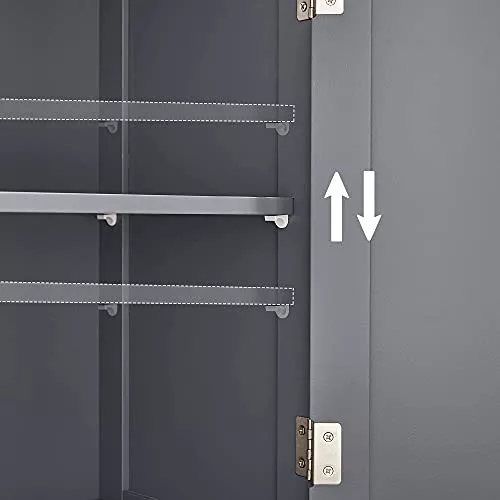 Több tárolóhelyet biztosít: Belsejében 2 rekesz található, amelyeket egy állítható polc választ el (3 magasságban állítható), így kényelmesen tárolhat különböző tárgyakat és maximalizálhatja a fürdőszoba terét.