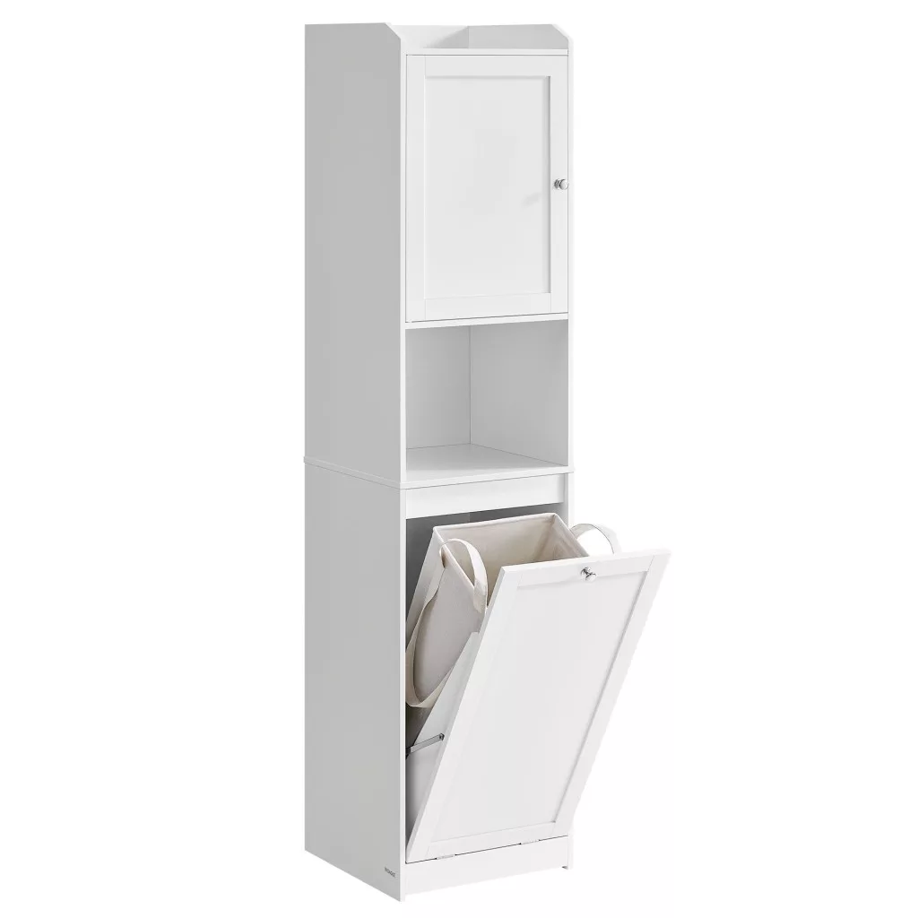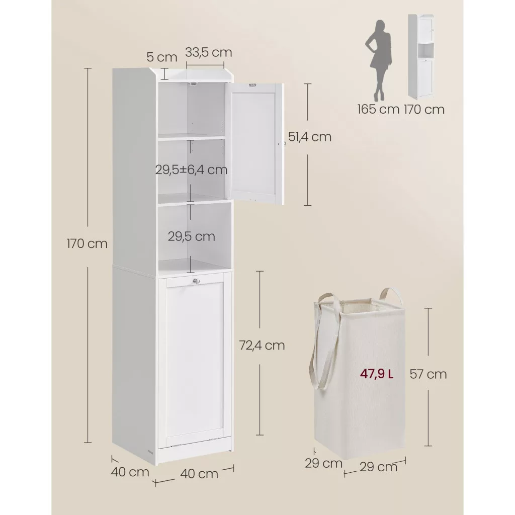 Fürdőszobai torony szekrény, mosókosárral, felhőfehér 40x40x170cm