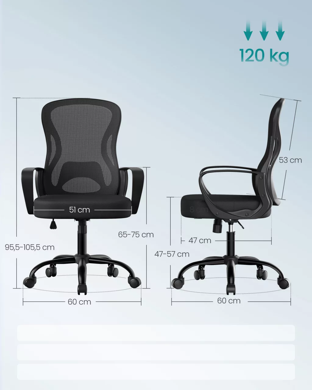 • Ülés méretei: 47 x 51 cm (mélység x szélesség)