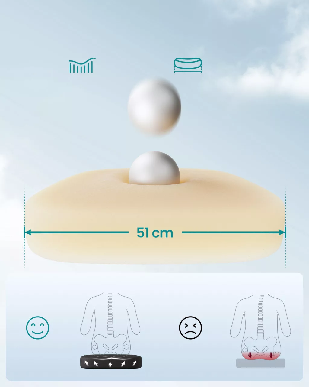 • Kényelmes és lélegző: A 20 hüvelyk széles és 3 hüvelyk vastag ülés magas sűrűségű habbal van töltve, ami enyhíti a csípőre nehezedő nyomást. A háttámla és az ülés minőségi hálós anyaggal van borítva, amely kellemes hűvös érzést biztosít.