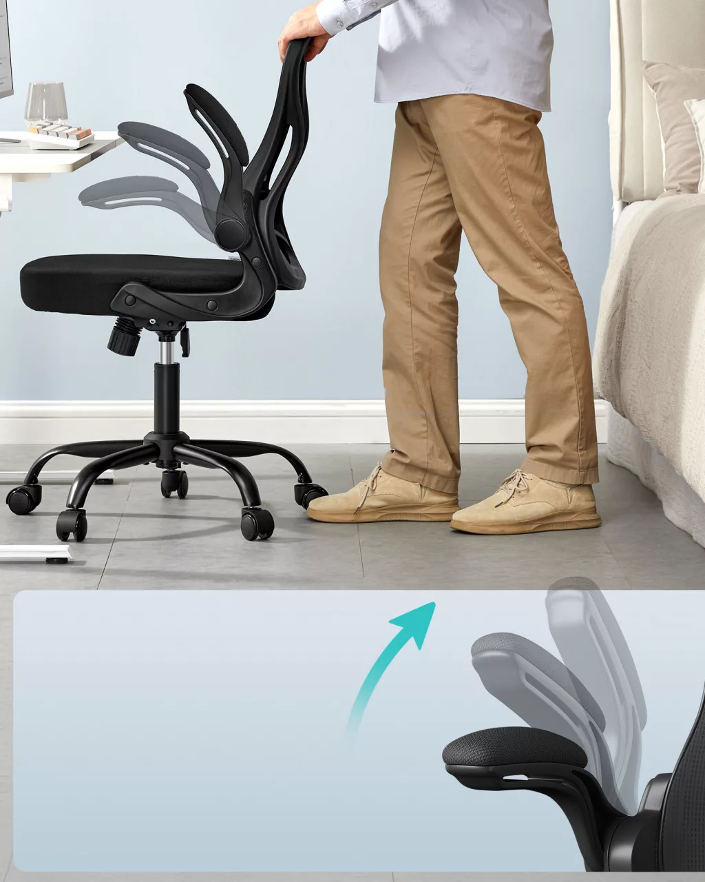 • Rugalmas és helytakarékos: Az ülés magassága állítható, így különböző magasságokhoz igazítható. A hintázó funkció (90-105°) lehetővé teszi a kényelmes pihenést, míg a lehajtható karfák segítenek a szék helytakarékos tárolásában.