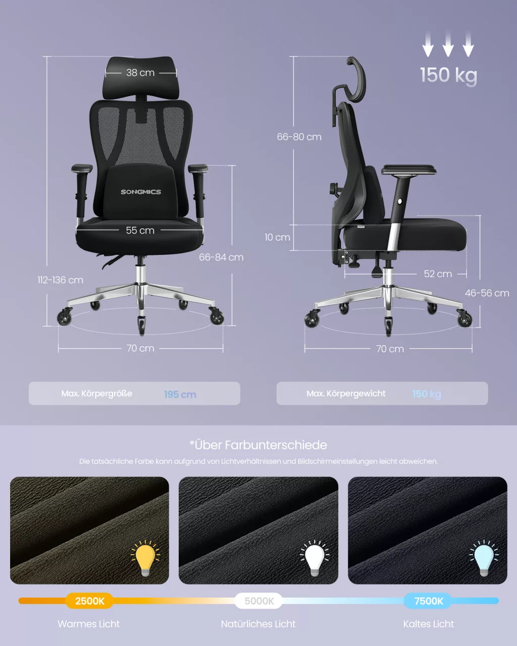 • Ergonomikus kialakítás: A szék a gerinc természetes ívéhez igazodik, így csökkenti a nyomást és növeli a kényelmet.