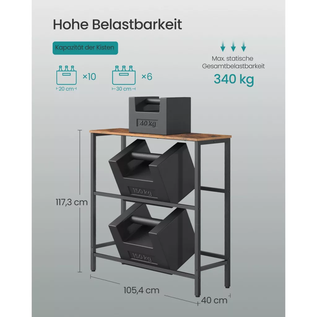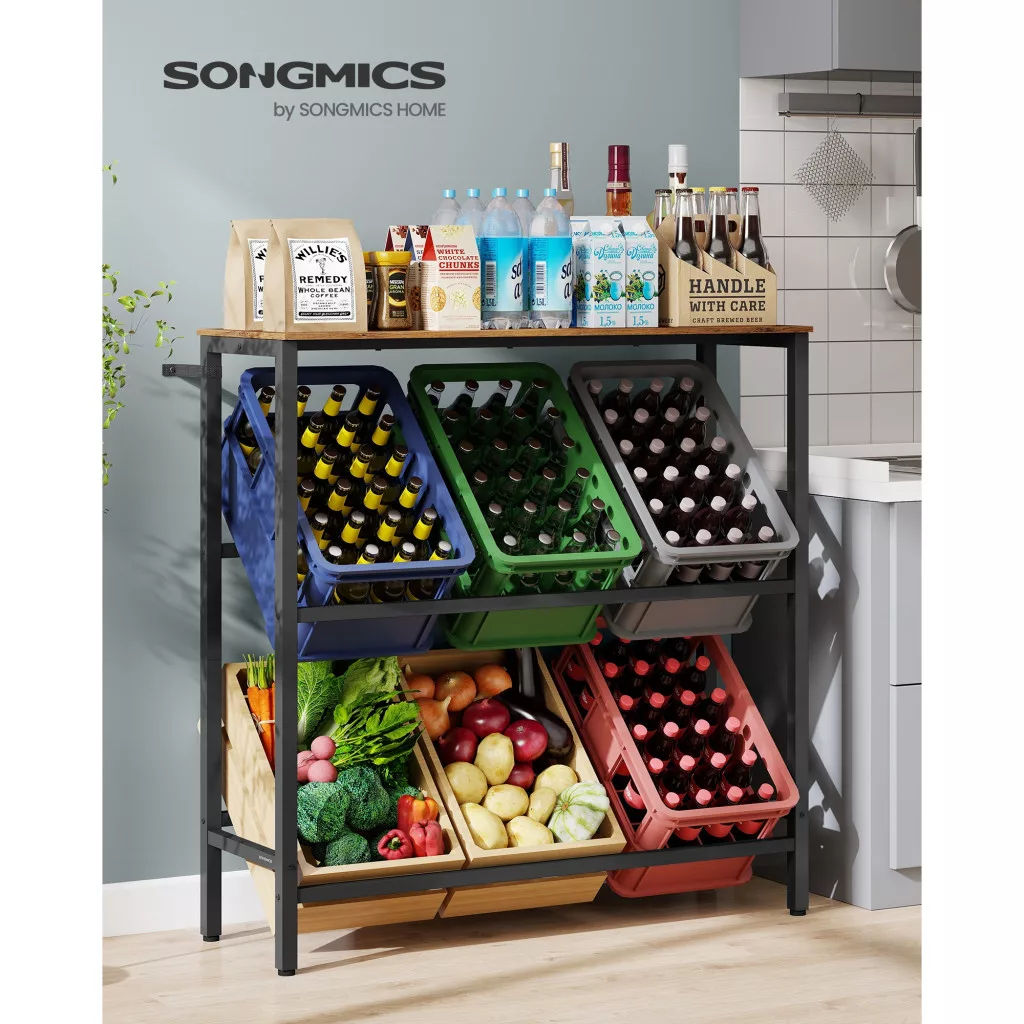 • Stabilitás és teherbírás: A polc minden szintje akár 150 kg-ot is elbír, így tökéletesen alkalmas italok, gyümölcsök és zöldségek tárolására.
