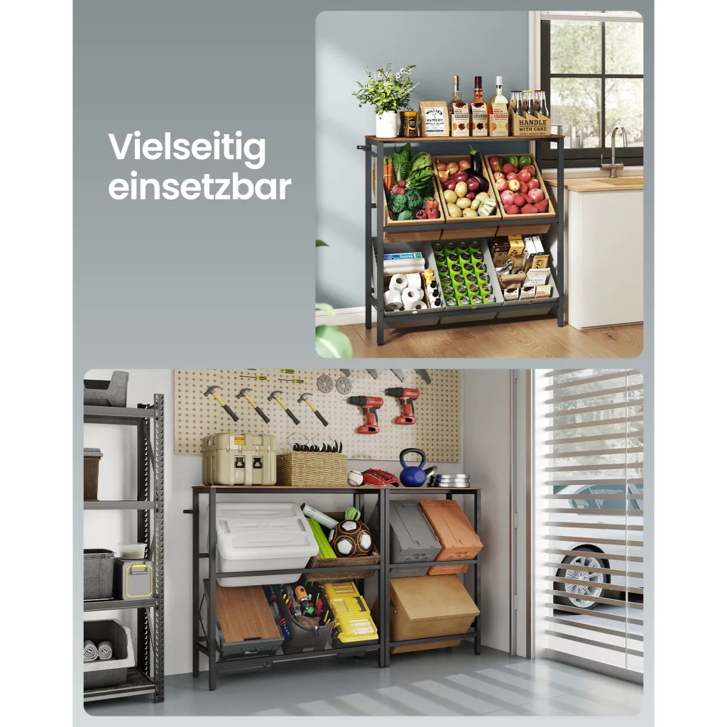 • Stílusos megjelenés: A rusztikus barna szín bármilyen belső térbe könnyen beilleszthető, legyen szó konyháról, nappaliról vagy tárolóról.