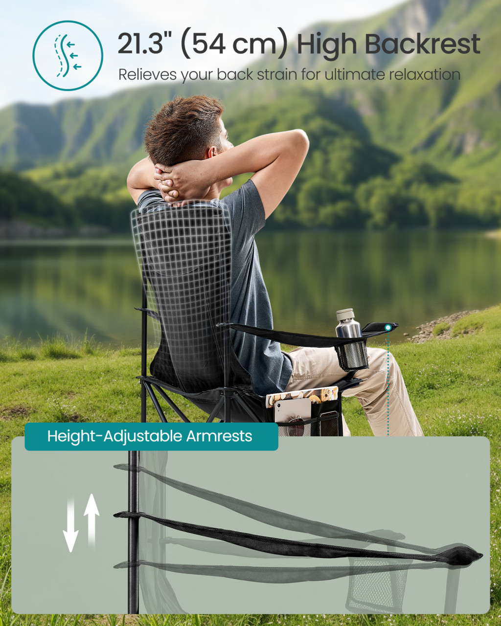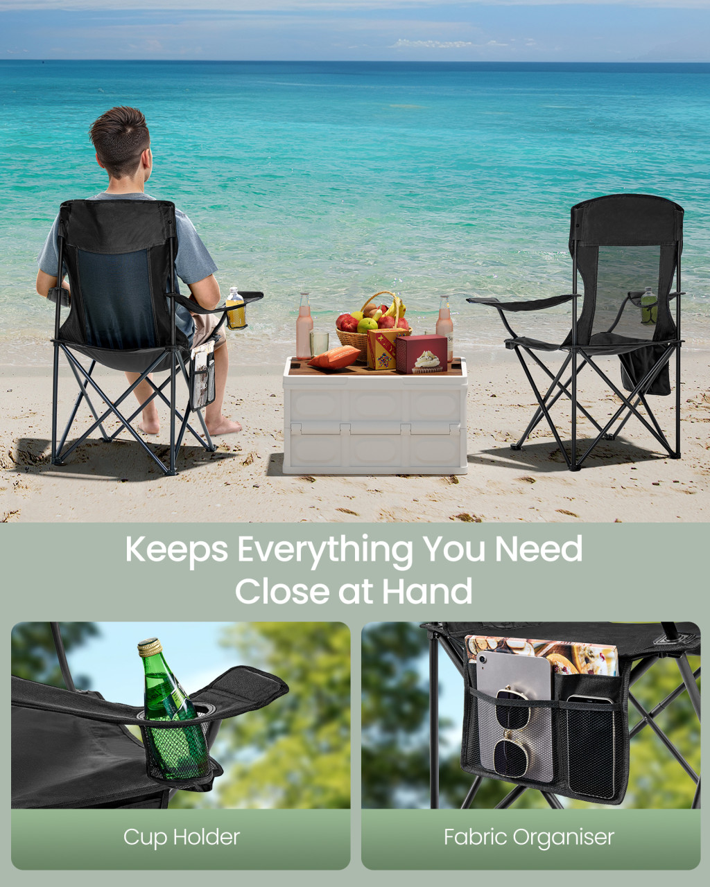 Kemping székek 2 db, összecsukható kültéri székek, magas háttámla, fekete