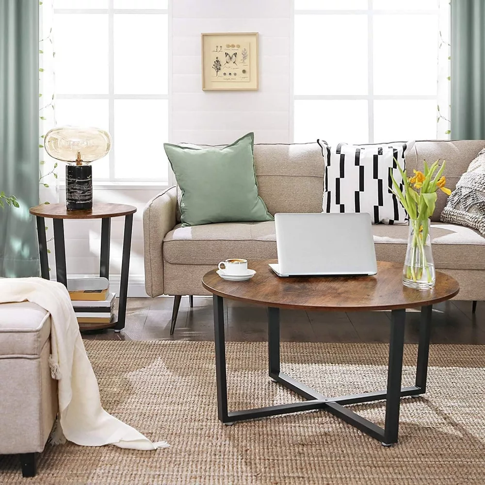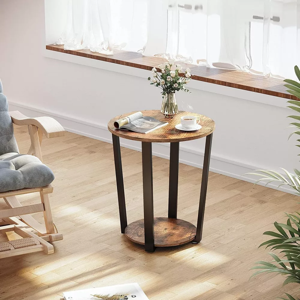 VASAGLE Kerek lerakóasztal, rusztikus barna, fekete acél lábakkal