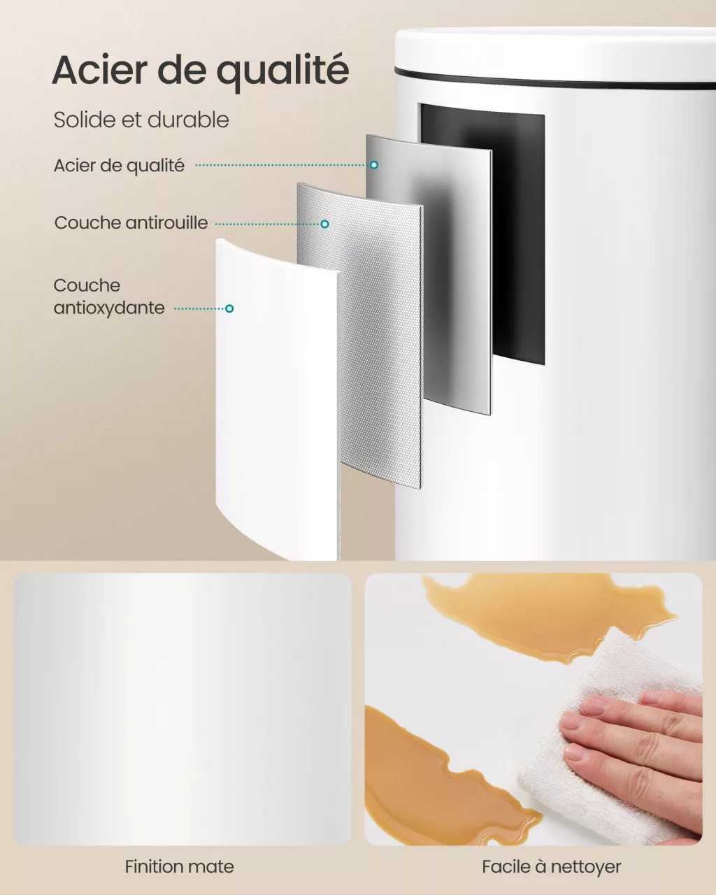 • Higiénikus belső vödör: A levehető belső vödör és a fogantyú segíti az egyszerű ürítést és tisztítást.