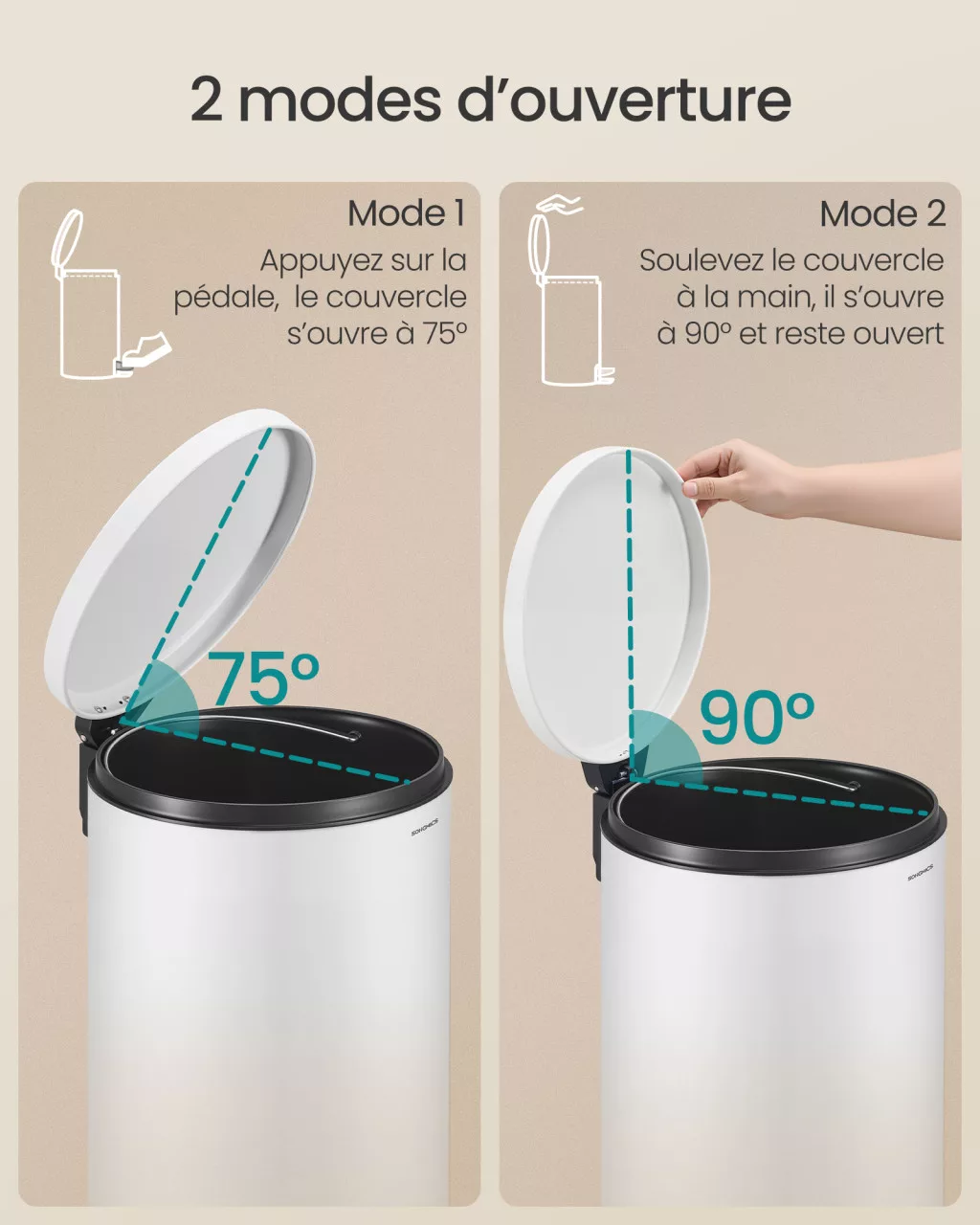 • Pedálos nyitás: A strapabíró pedál lehetővé teszi a szemetes könnyű használatát anélkül, hogy meg kellene érinteni a fedelet.