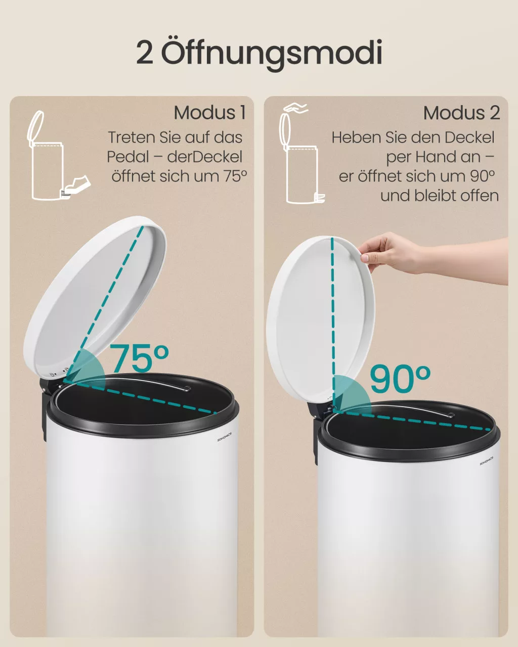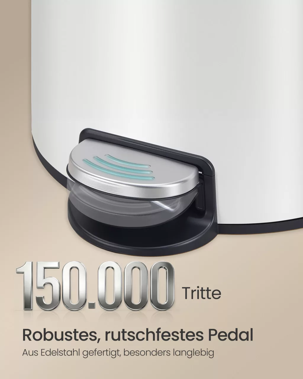 • Kéz nélküli nyitás: A pedál 150,000 nyomásra lett tesztelve, így kényelmesen használható anélkül, hogy meg kellene hajolni vagy megérinteni a fedelet.
