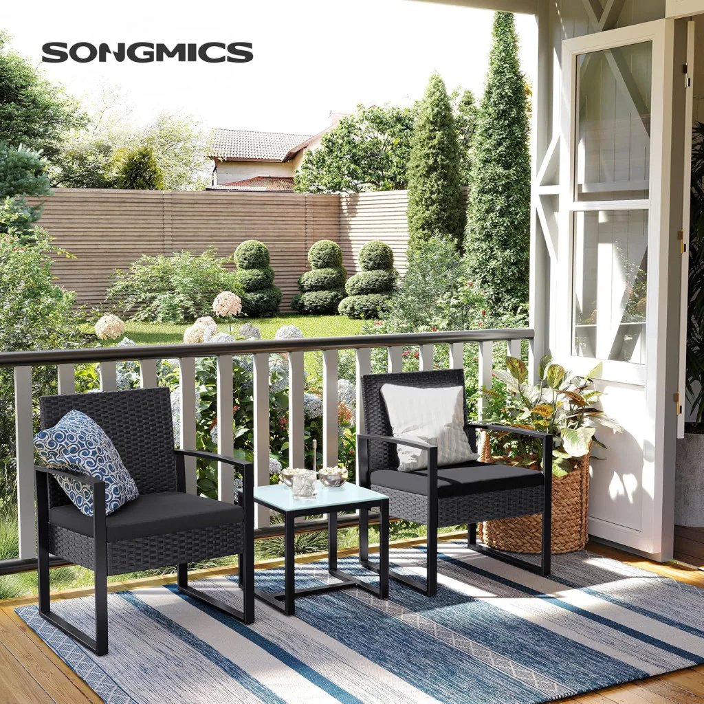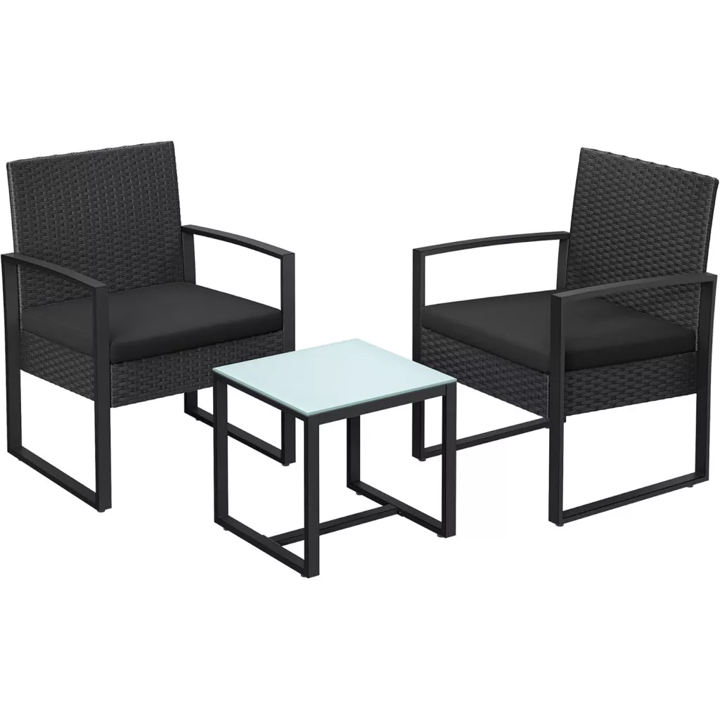 Kerti bútor szett, polyrattan, 2 szék és 1 asztal, fekete