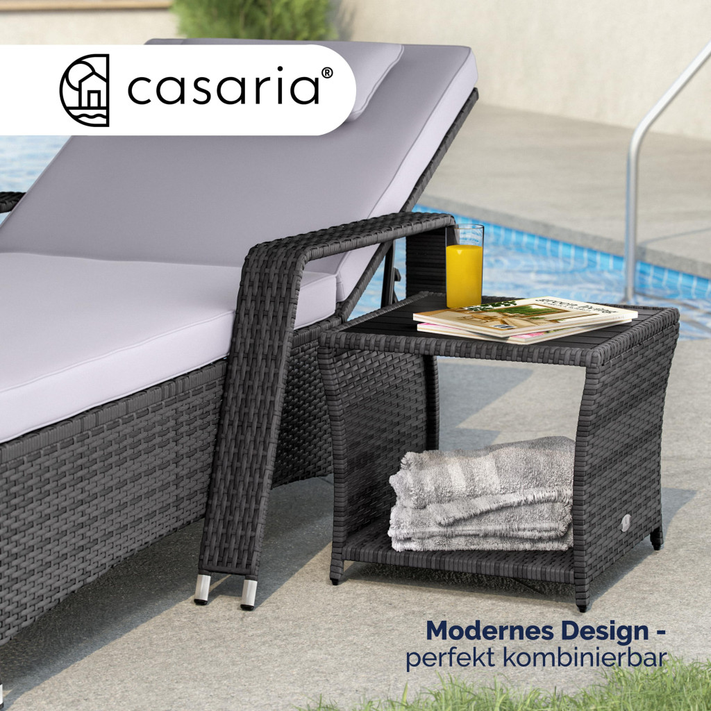 A praktikus polyrattan kerti kisasztal tökéletes kiegészítője otthonának. Legyen szó egy napernyő mellett elhelyezett tárolóról, egy pihenő sarokban lévő lábtartóról vagy akár egy növénytartóról, ez a kisasztal mindig a figyelem középpontjában áll. A stílusos dizájn lehetővé teszi, hogy könnyedén kombinálja más bútorokkal.