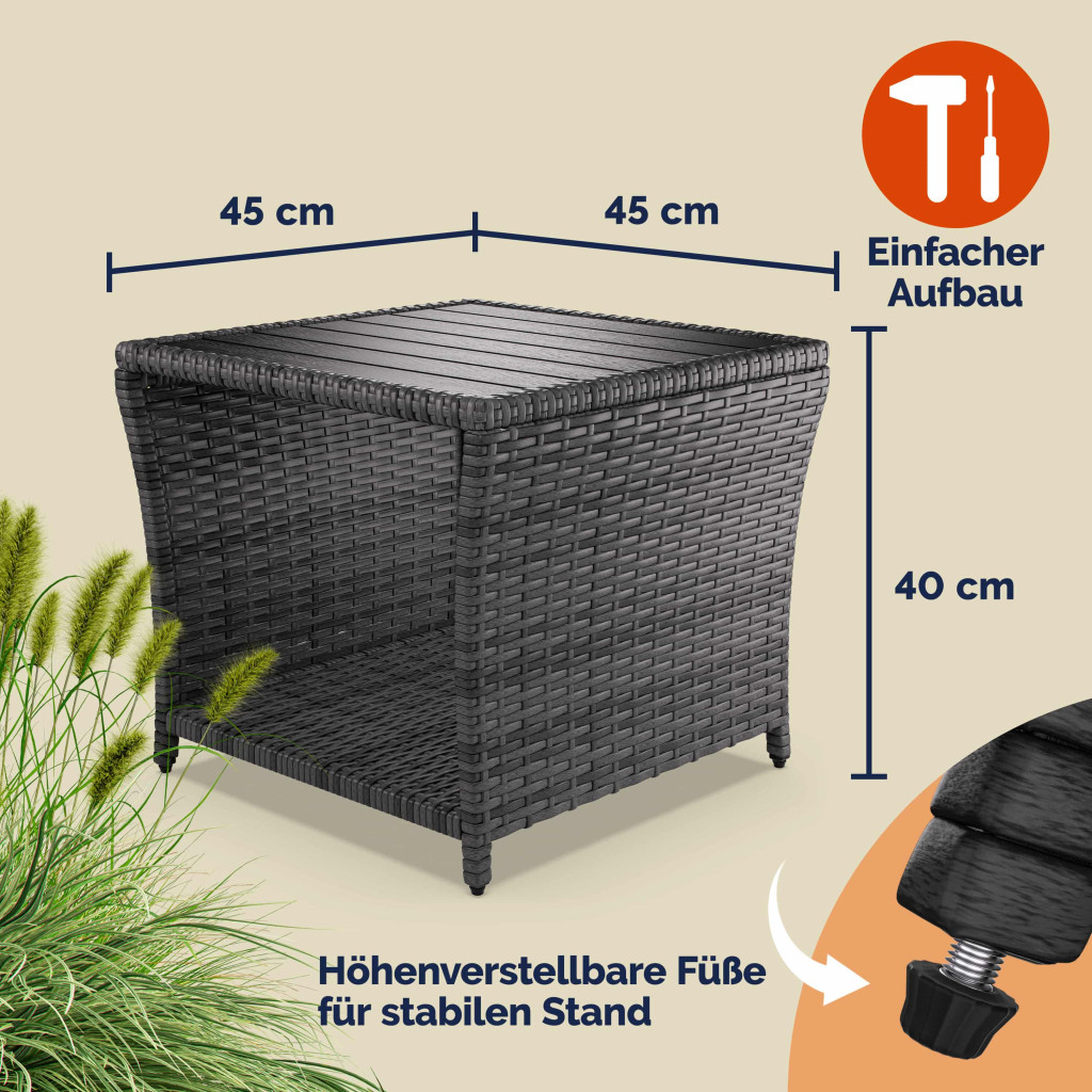 Kerti kisasztal, polyrattan, szürke, 45 x 45 x 40 cm
