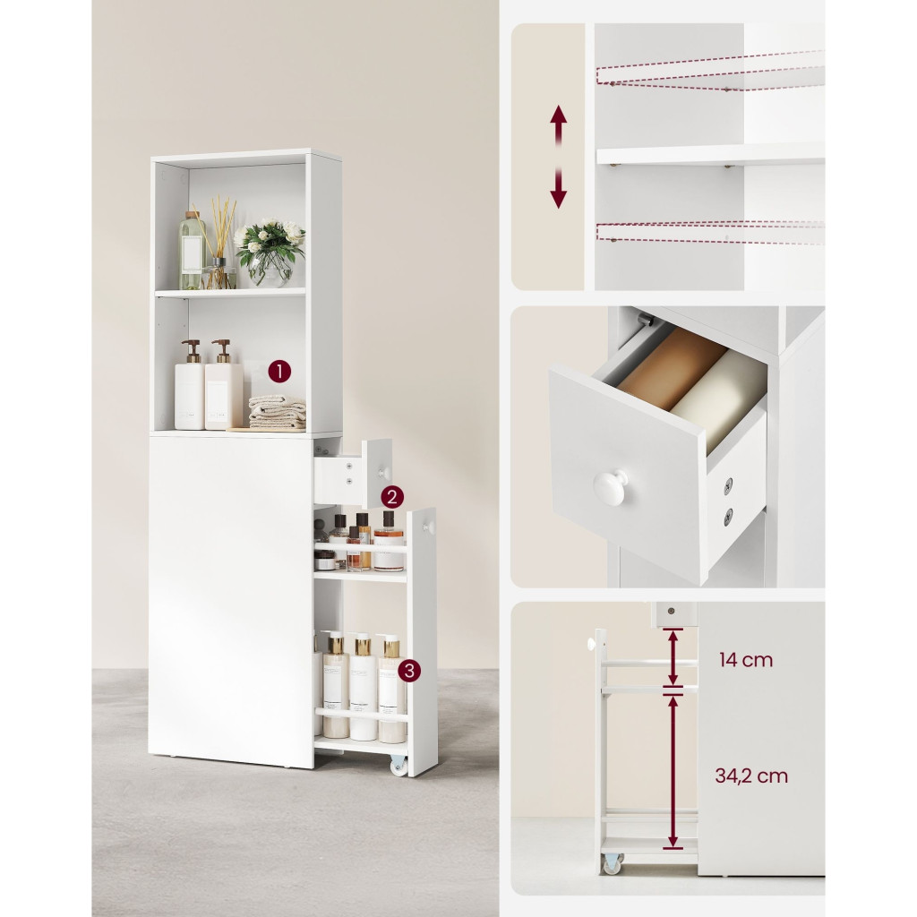 Válassza ezt a keskeny fürdőszoba tároló szekrényt, és élvezze a rendezett és stílusos fürdőszobát!