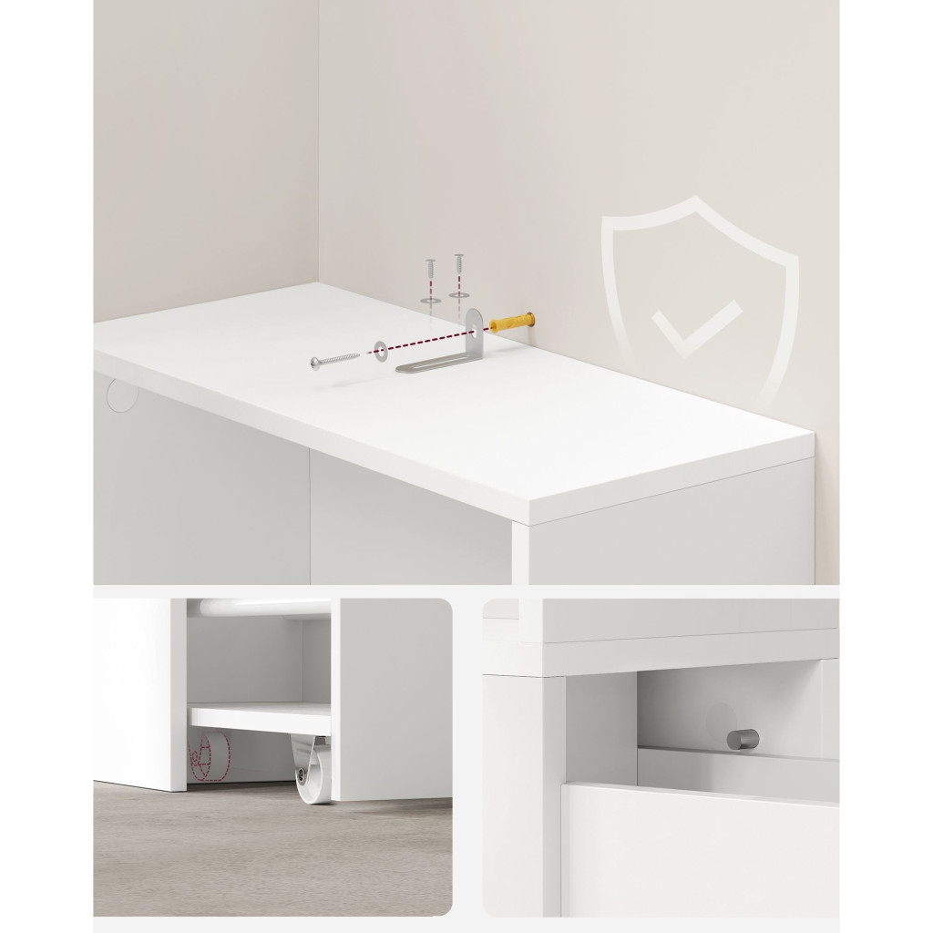 • Stabil és tartós: Magas minőségű forgácslapból készült, amely biztosítja a hosszú élettartamot és a stabilitást. Az anti-tip kit pedig extra biztonságot nyújt.