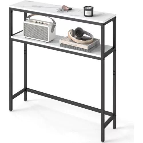 Ez a keskeny konzolasztal ideális választás a modern otthonokba, ahol a stílus és a funkcionalitás egyaránt fontos. A márvány fehér és fekete színkombináció eleganciát sugall, miközben a praktikus kialakítás lehetővé teszi, hogy a legszükségesebb dolgokat mindig kéznél tartsuk.