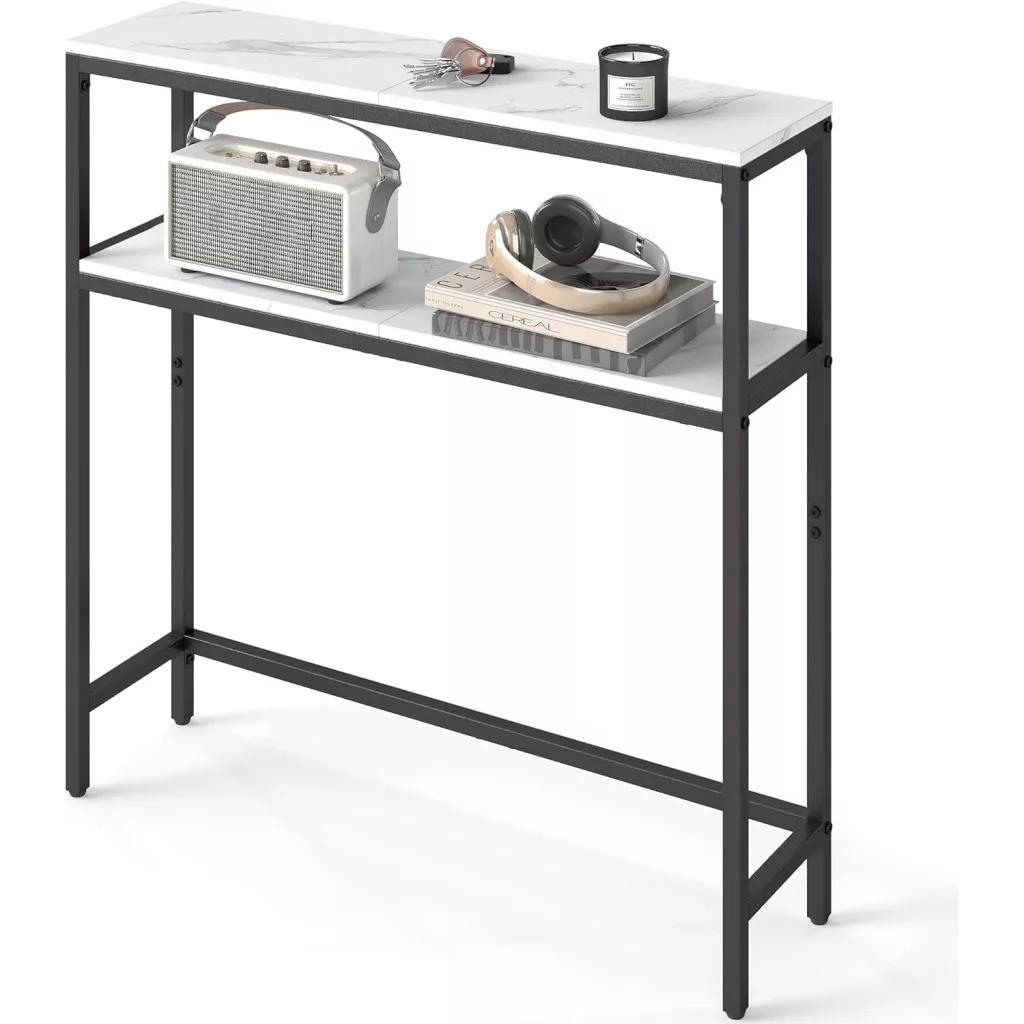 Keskeny konzolasztal 2 polccal, márvány fehér és fekete
