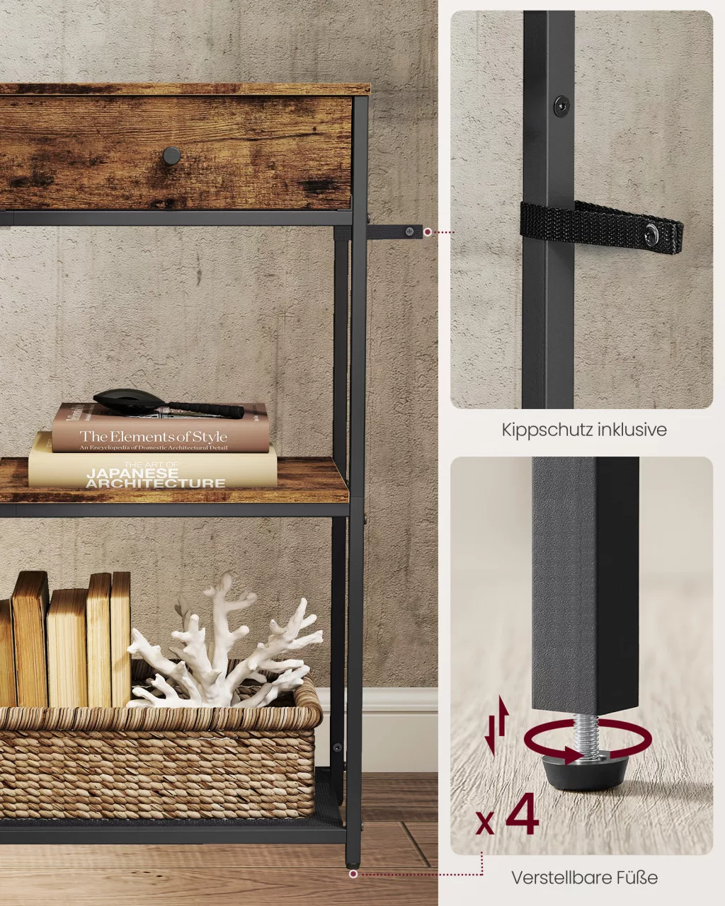 Ez a keskeny konzolasztal ideális megoldás a tárolásra és a stílusos megjelenésre. A rusztikus barna szín és a modern acél keret tökéletes kombinációt alkot, amely bármilyen enteriőrbe illeszkedik. Az alábbi előnyöket élvezheti, ha ezt a konzolasztalt választja: