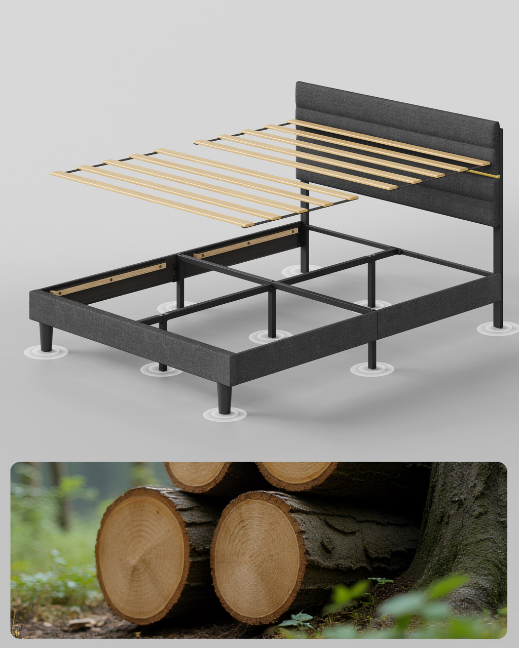 • Robusztus és stabil: A fém keret és a vastag fa ágyrácsok optimális stabilitást nyújtanak.