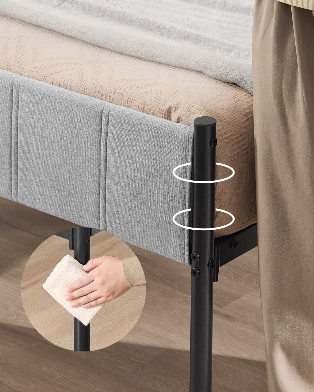 • Stabil és zajtalan: A robusztus acél ágykeret és a 9 erős láb maximális stabilitást nyújt, akár 500 kg teherbírással.