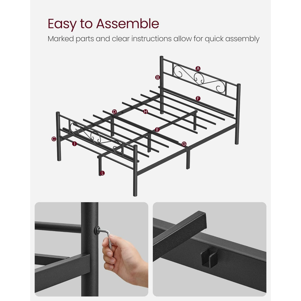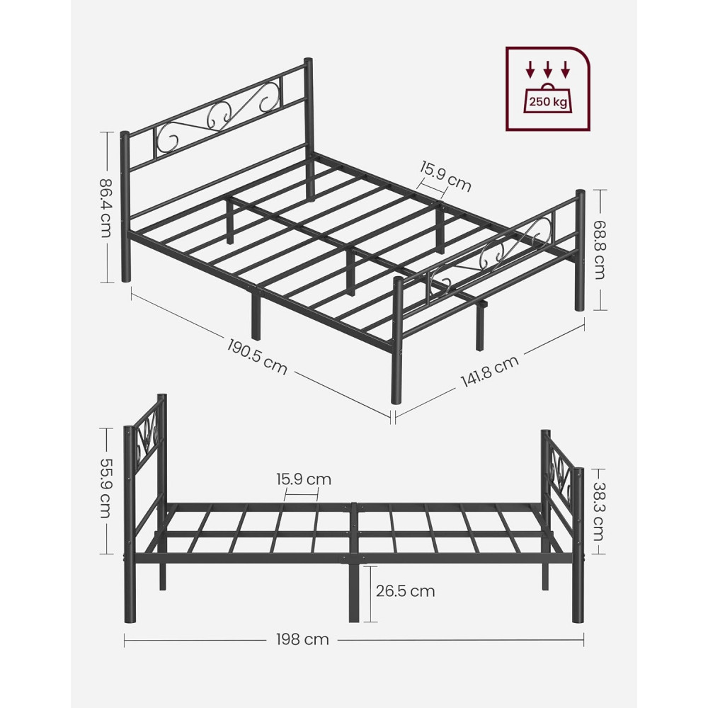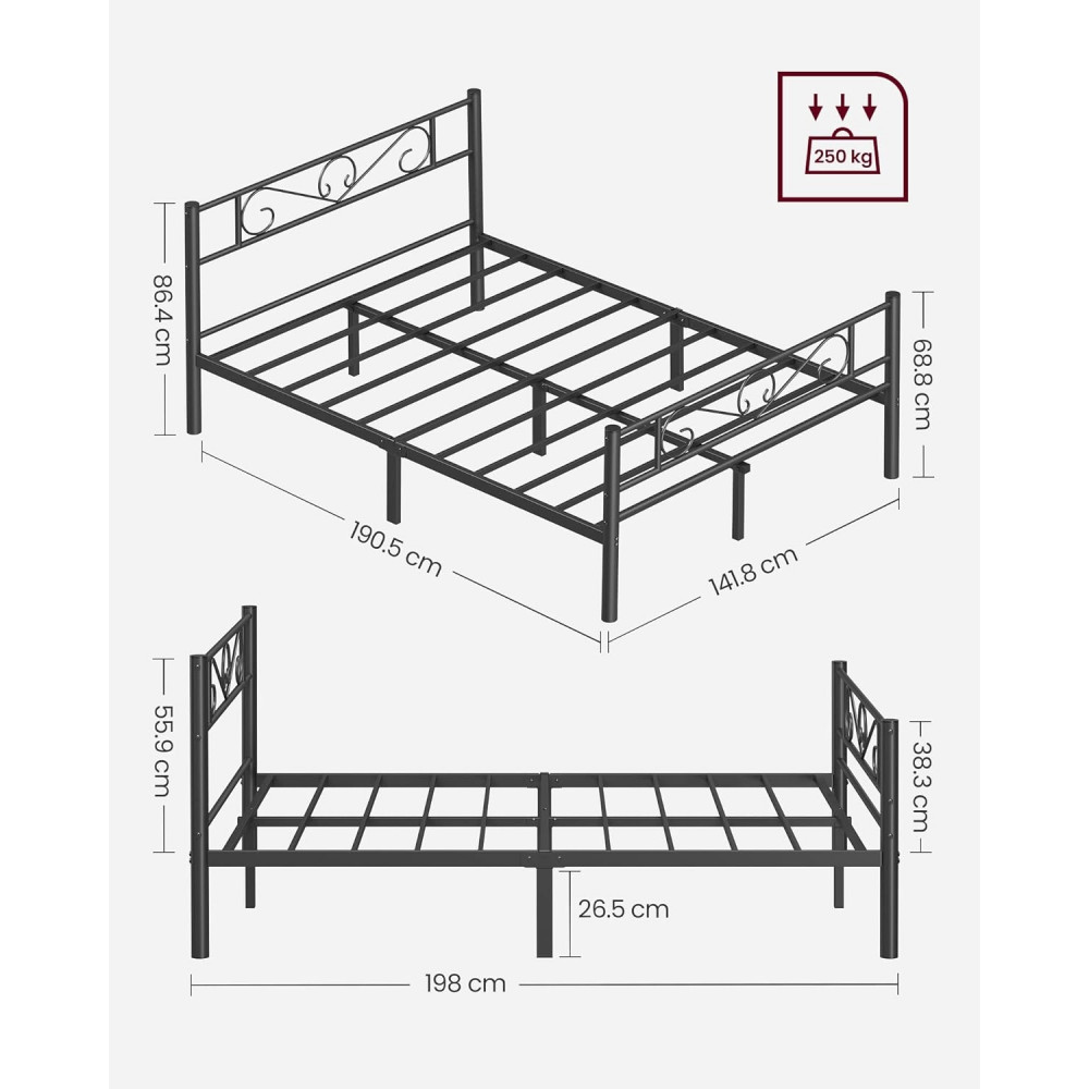 VASAGLE Kétszemélyes fém ágykeret, 140x190 cm matrachoz, fekete