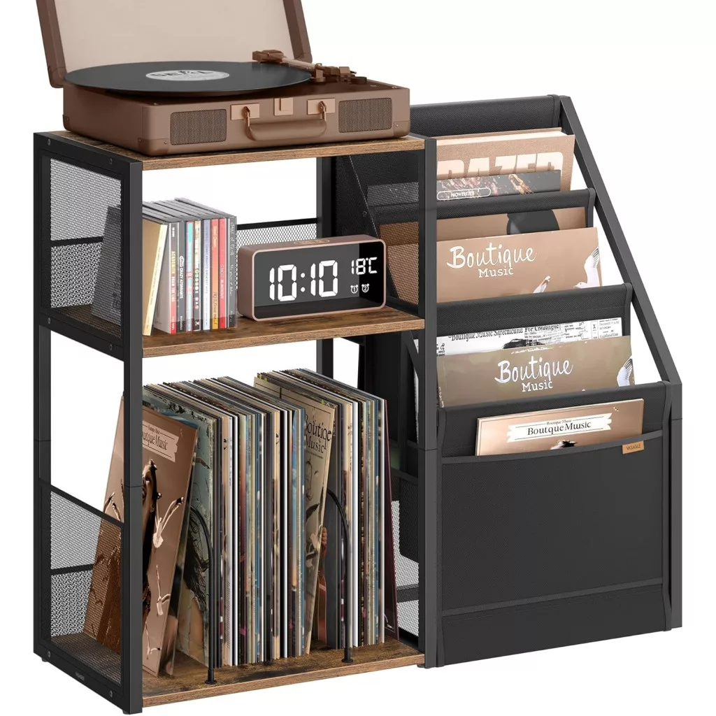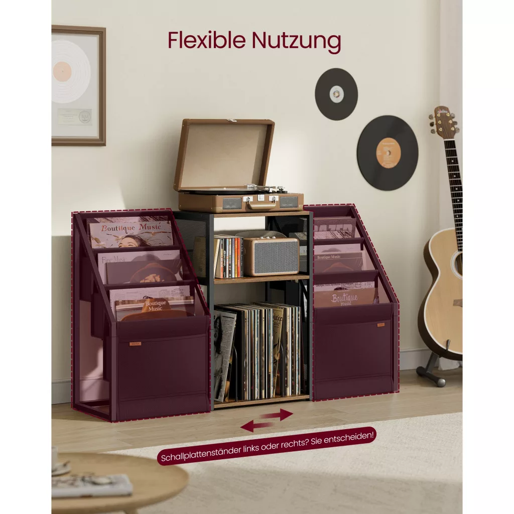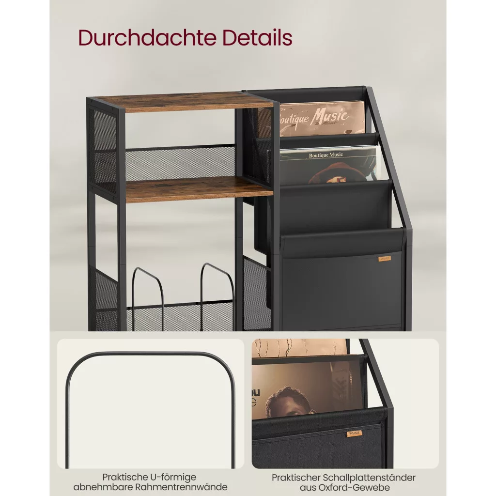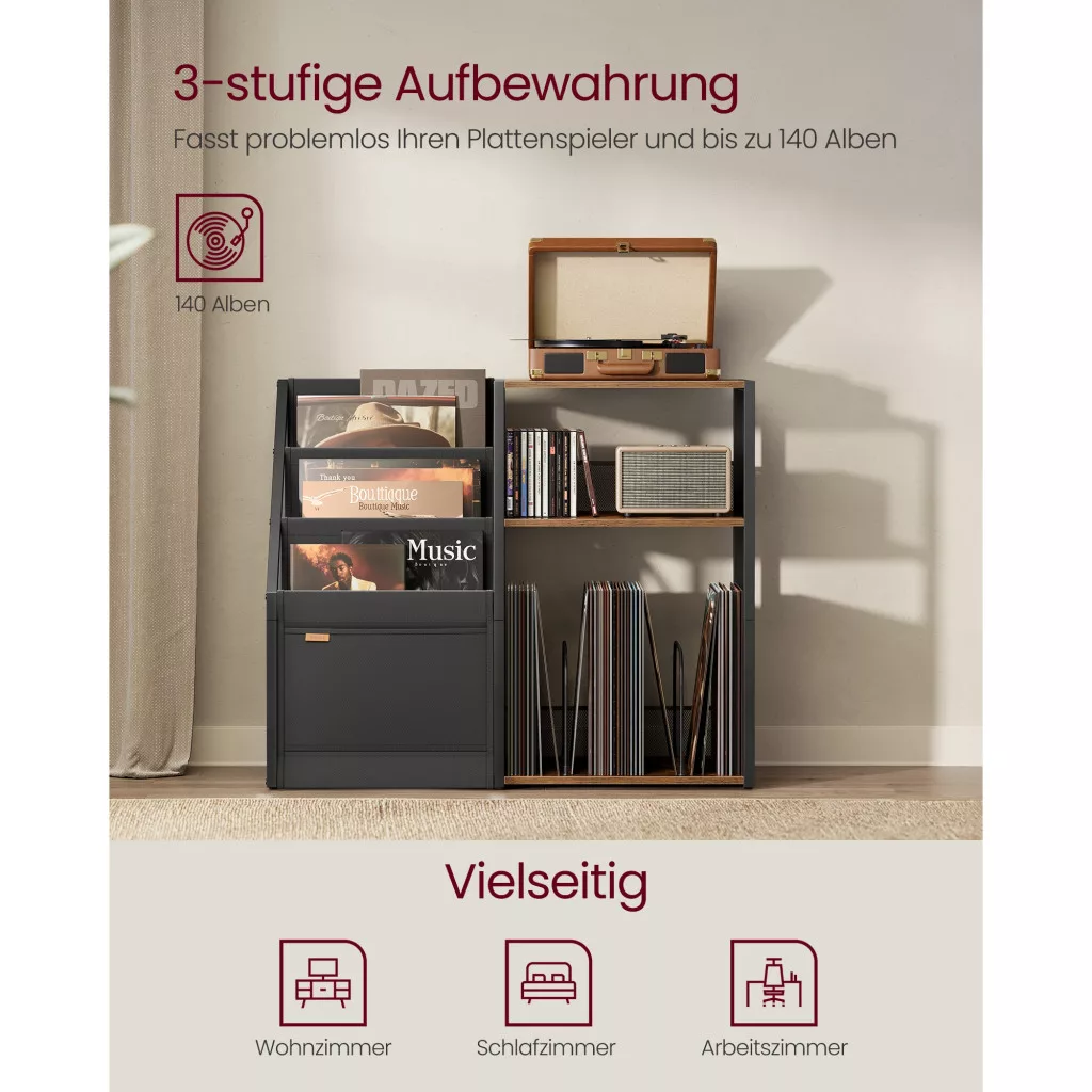 Lemezjátszó állvány, 3 szintes, rusztikus barna, 140 albumig