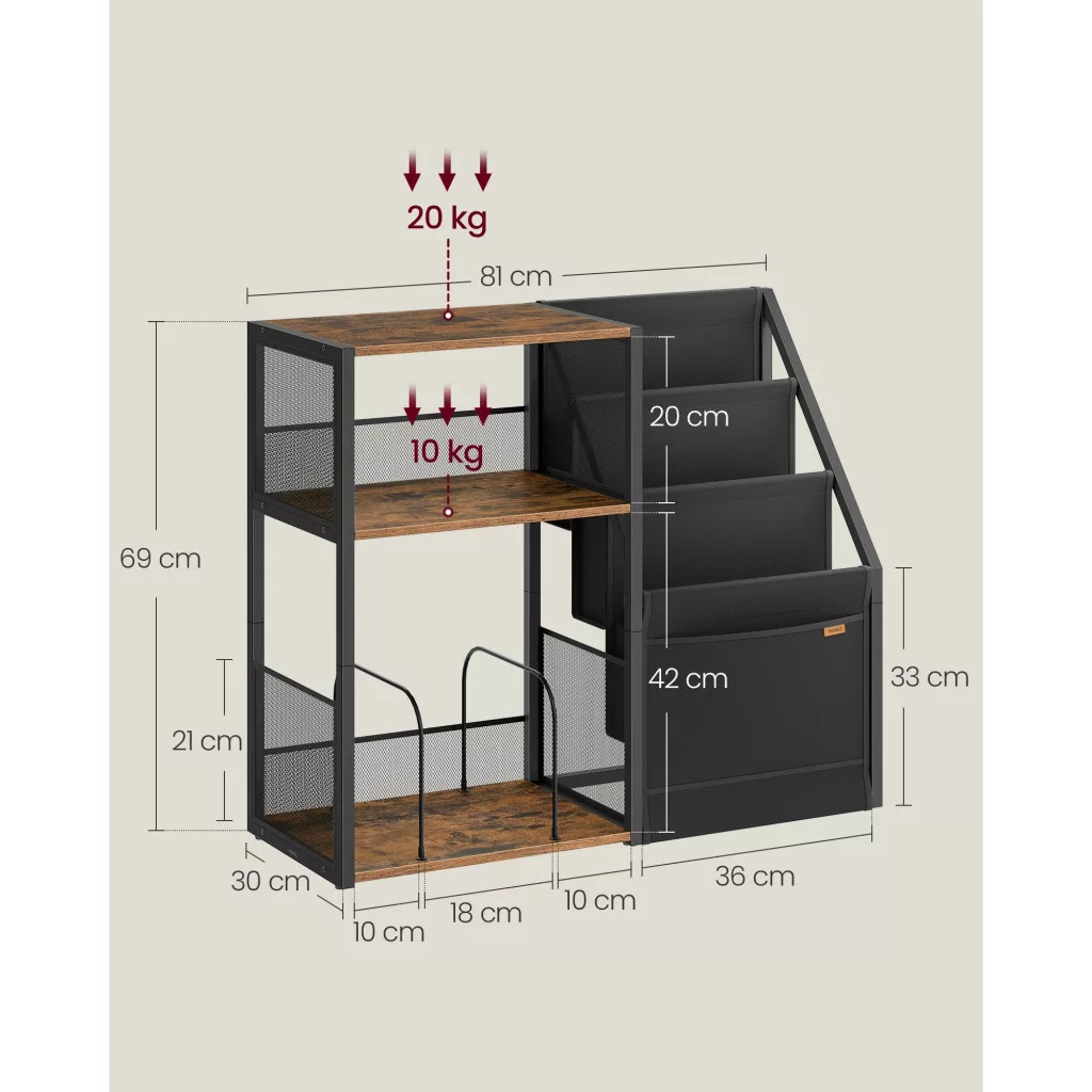 • STURDY AND STYLISH: A robusztus forgácslap, acél és Oxford szövet kombinációja biztosítja a tartósságot, míg a rusztikus barna és fekete színek ipari megjelenést kölcsönöznek a dekorációdnak.