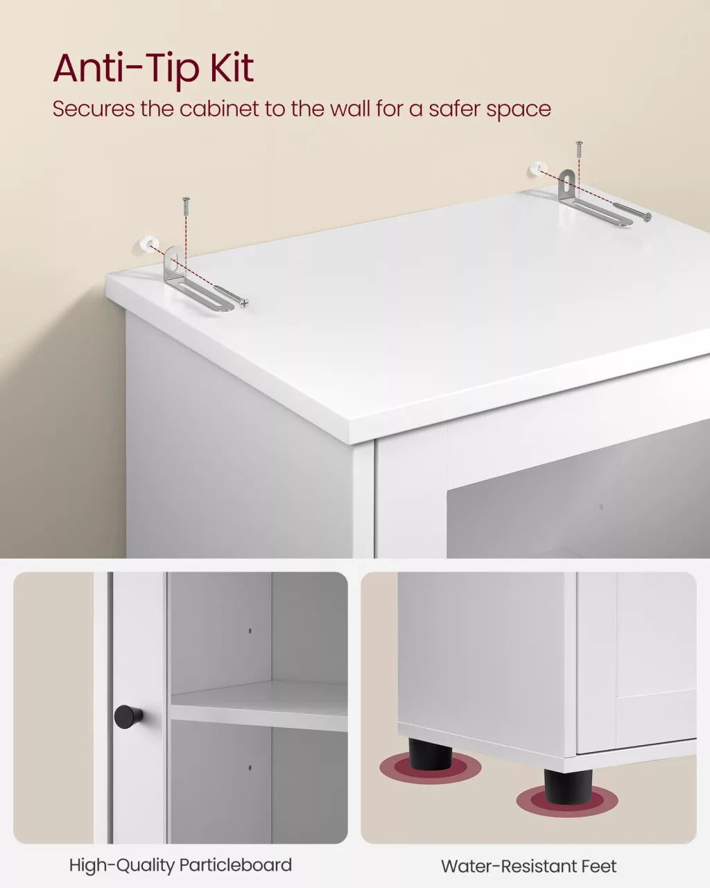 • Könnyű összeszerelés: A számozott alkatrészek és a világos utasítások segítségével gyorsan és egyszerűen összeállíthatja ezt a magas fürdőszoba szekrényt.