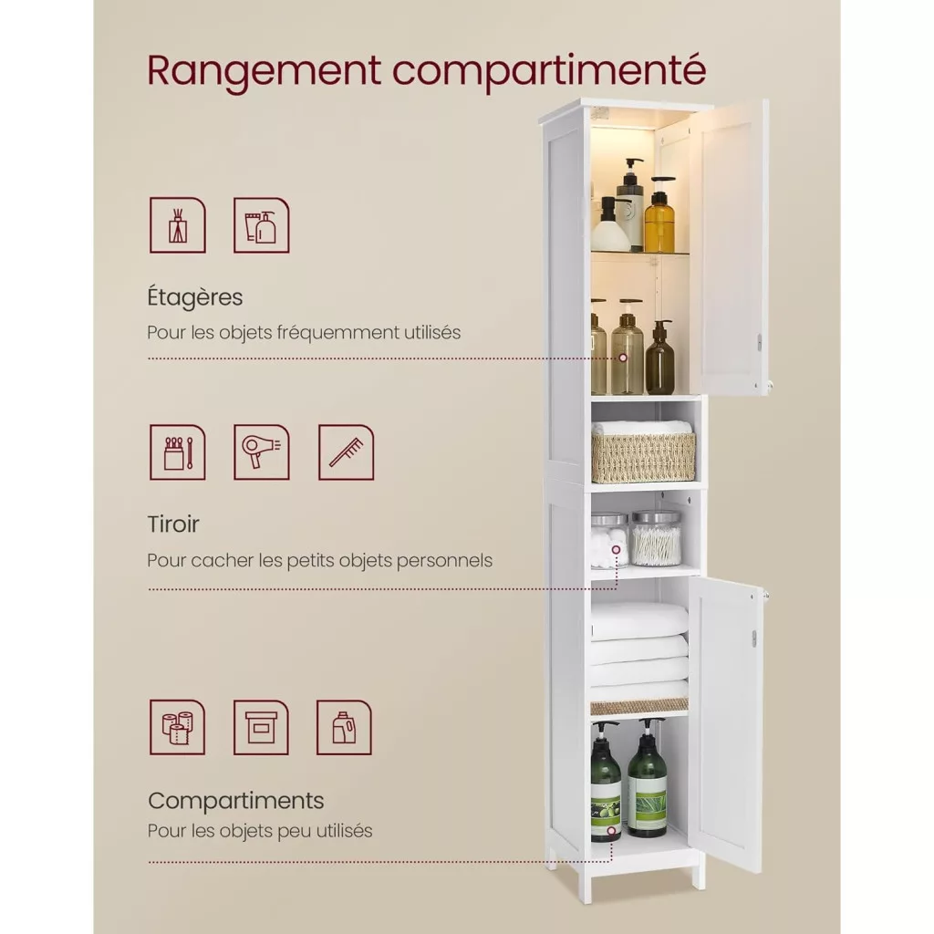Fedezze fel a VASAGLE legújabb fürdőszobai megoldását, amely tökéletesen illeszkedik a szűk helyekre! Ez a magas, keskeny fürdőszoba szekrény nemcsak stílusos, hanem rendkívül praktikus is, hiszen rengeteg tárolóhelyet kínál anélkül, hogy sok helyet foglalna el.