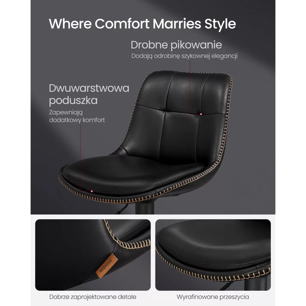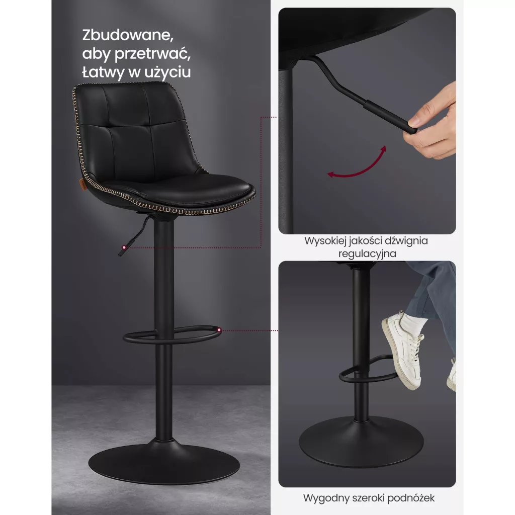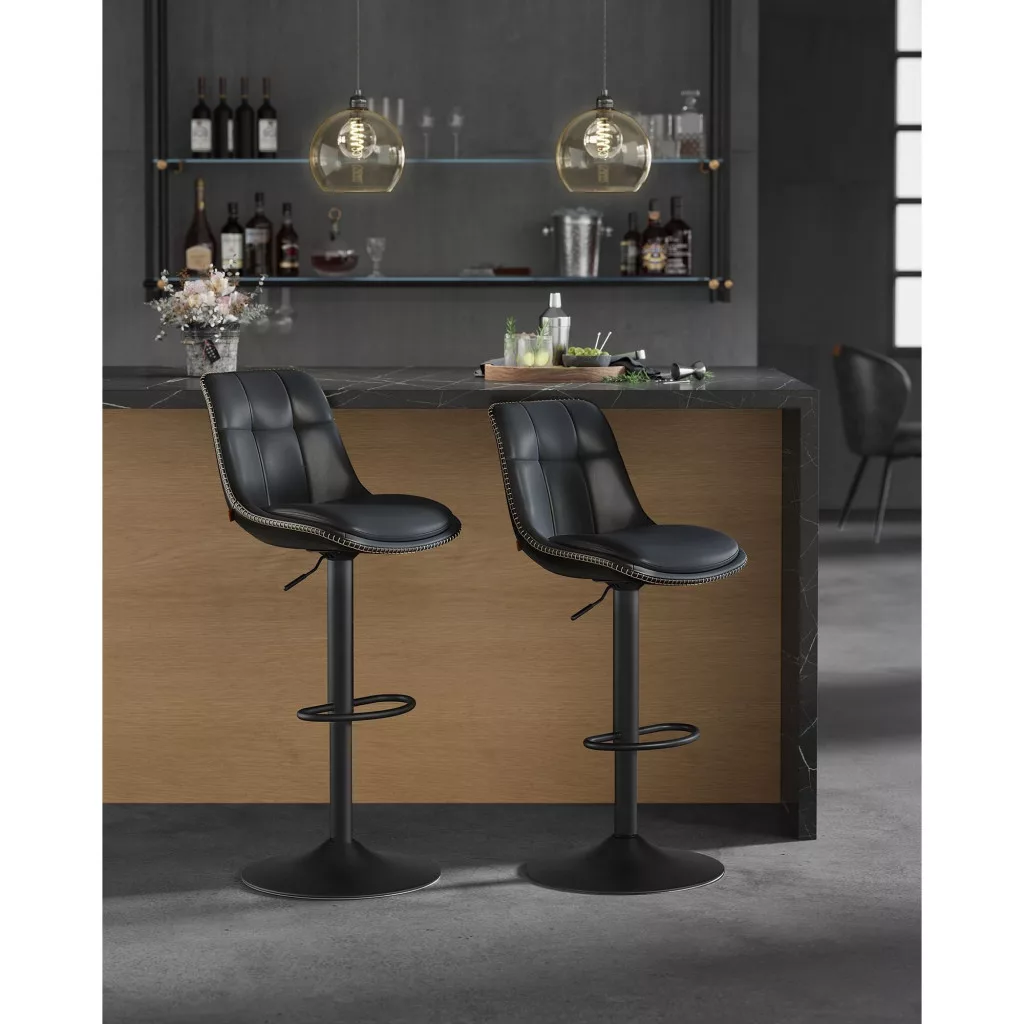 Ez a magasságban állítható forgós bárszék tökéletes választás a modern otthonokba. Az elegáns, kárpitozott PU felület és a stílusos fekete szín bármilyen belső térbe könnyedén beilleszthető, legyen szó bárpultokról, konyhai szigetekről vagy akár a nappaliról. A következő előnyöket kínálja: