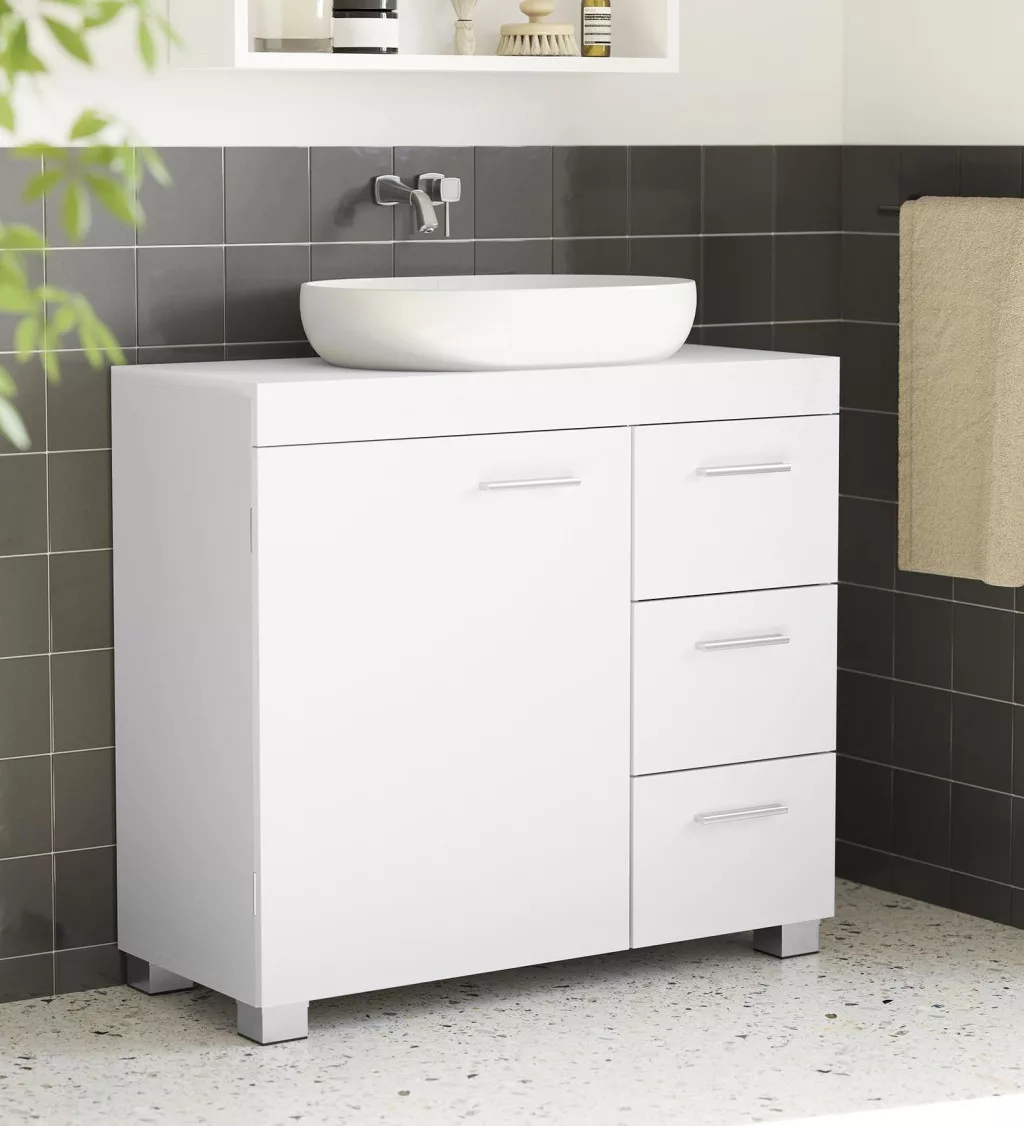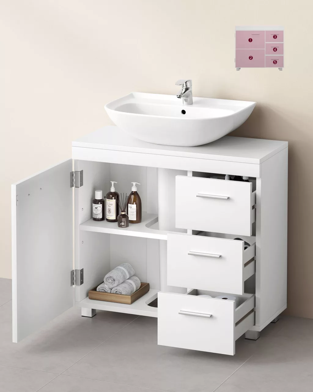 Mosdó alatti fürdőszoba szekrény, 3 fiókos, fehér 30x70x64cm