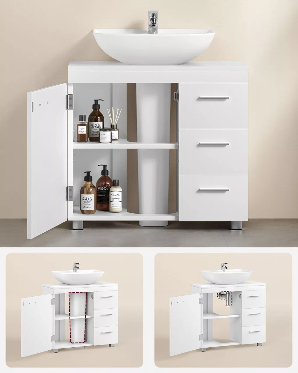 A mosdó alatti fürdőszoba szekrény tökéletes megoldás a fürdőszobai tárolásra, amely segít rendben tartani a teret. Ez a 3 fiókos, fehér szekrény nemcsak esztétikus, hanem rendkívül praktikus is. Az alábbi előnyöket élvezheti, ha ezt a terméket választja: