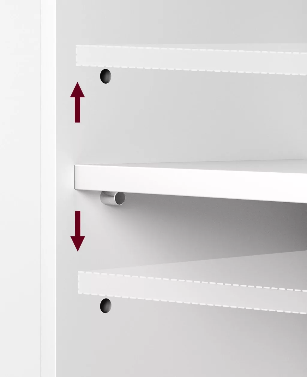 • Magasságban állítható polc: Az állítható polc 3 különböző magasságra állítható, így könnyedén tárolhat különböző méretű termékeket, mint például magas samponos flakonokat vagy kisebb tusfürdőket.