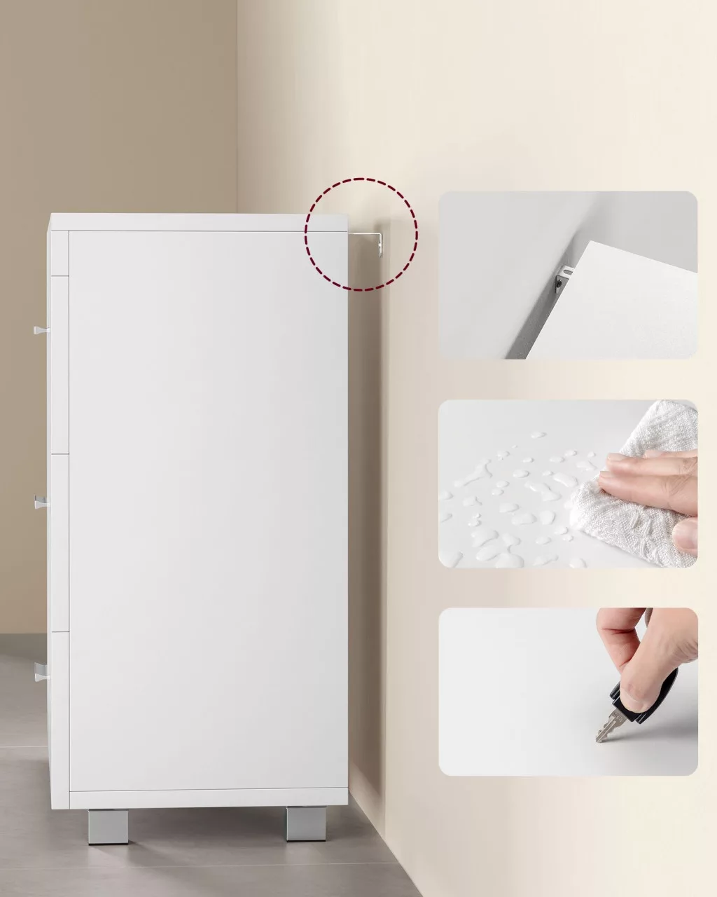 • Rugalmas tárolás: A 3 tágas fiók és a zárt tér mögött található 2 rekesz elegendő helyet biztosít a törölközők, tisztítószerek és egyéb fürdőszobai kellékek rendezett tárolására.