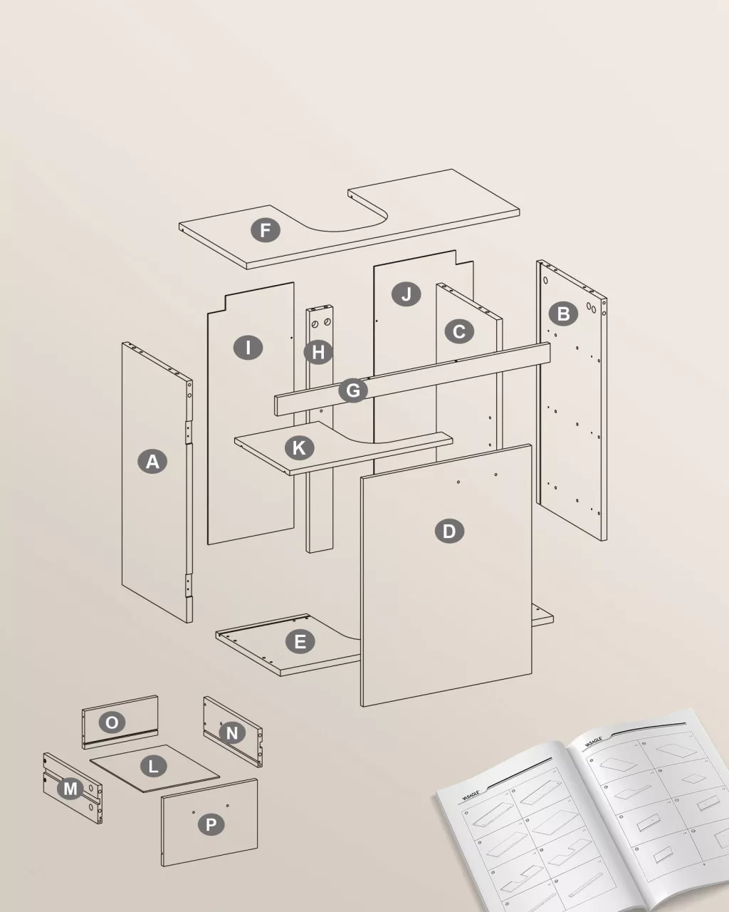 • Könnyű összeszerelés: A megjelölt alkatrészek és az illusztrált útmutató segít a gyors és egyszerű összeszerelésben, így azonnal elkezdheti a fürdőszoba rendezését.