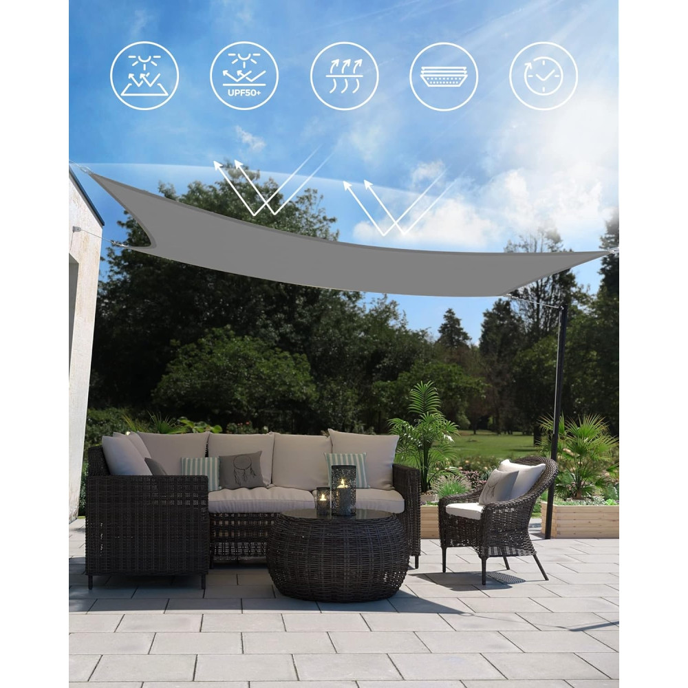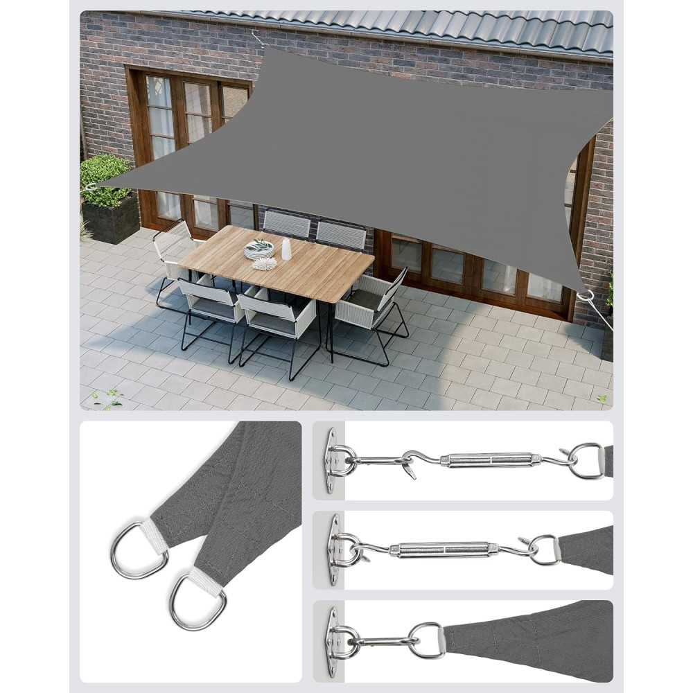 SONGMICS Napvitorla, 2x3m, 93% UV védelem, víz és időjárás álló, szürke