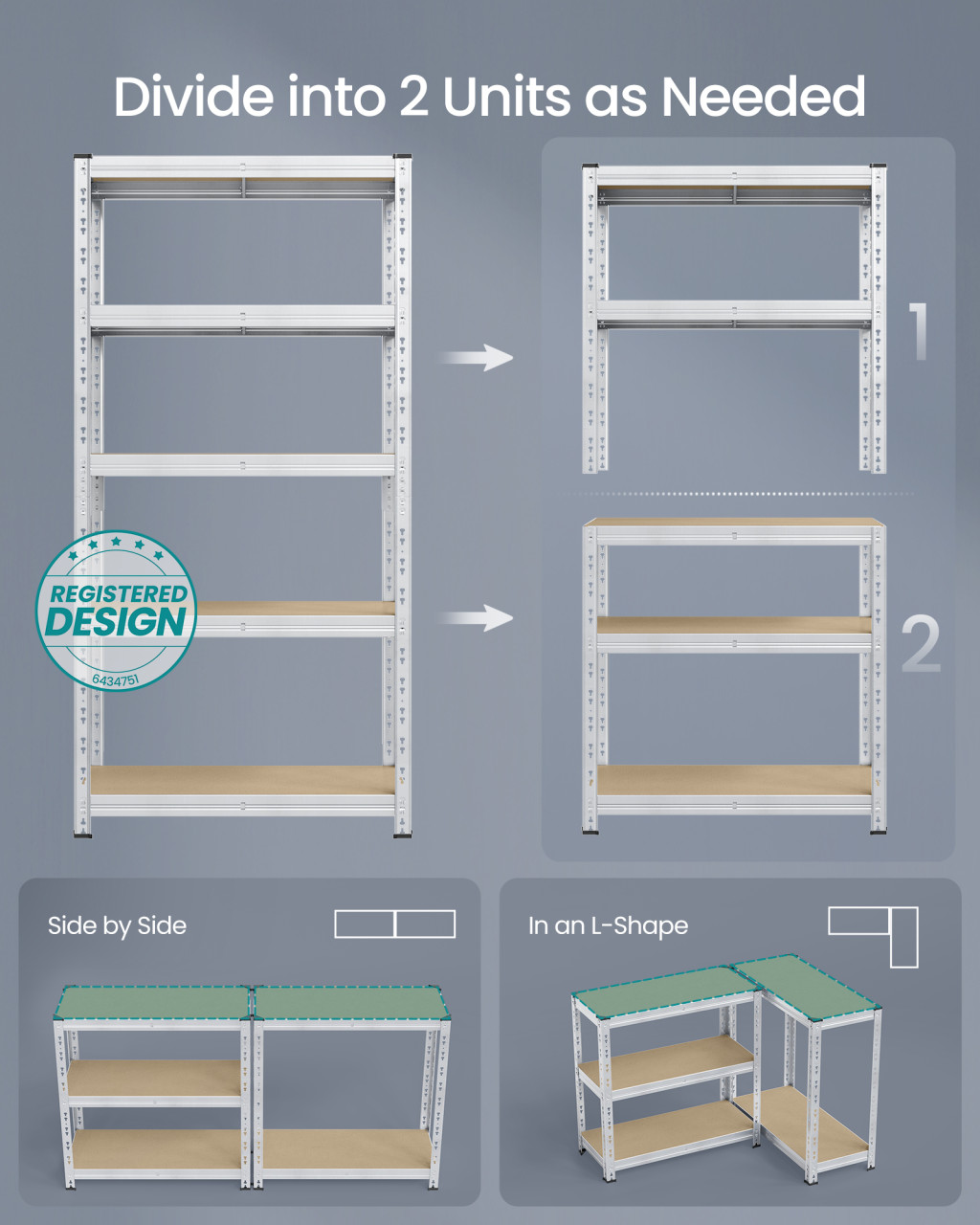 • Osztott dizájn: Az állványt két kisebb polcra is szétválaszthatja, így rugalmasan alkalmazkodhat a különböző tárolási igényekhez.