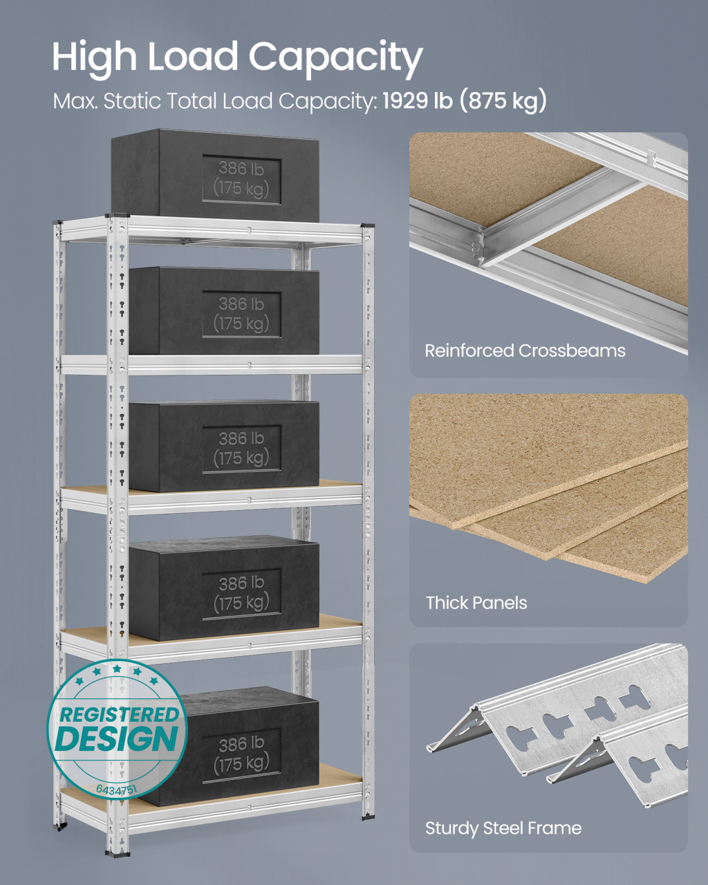 • Erős és stabil: A masszív acélváz és a vastag MDF lapok kombinációja lehetővé teszi, hogy minden polc akár 175 kg-ot is elbírjon, így biztonságosan tárolhat nehéz tárgyakat is.