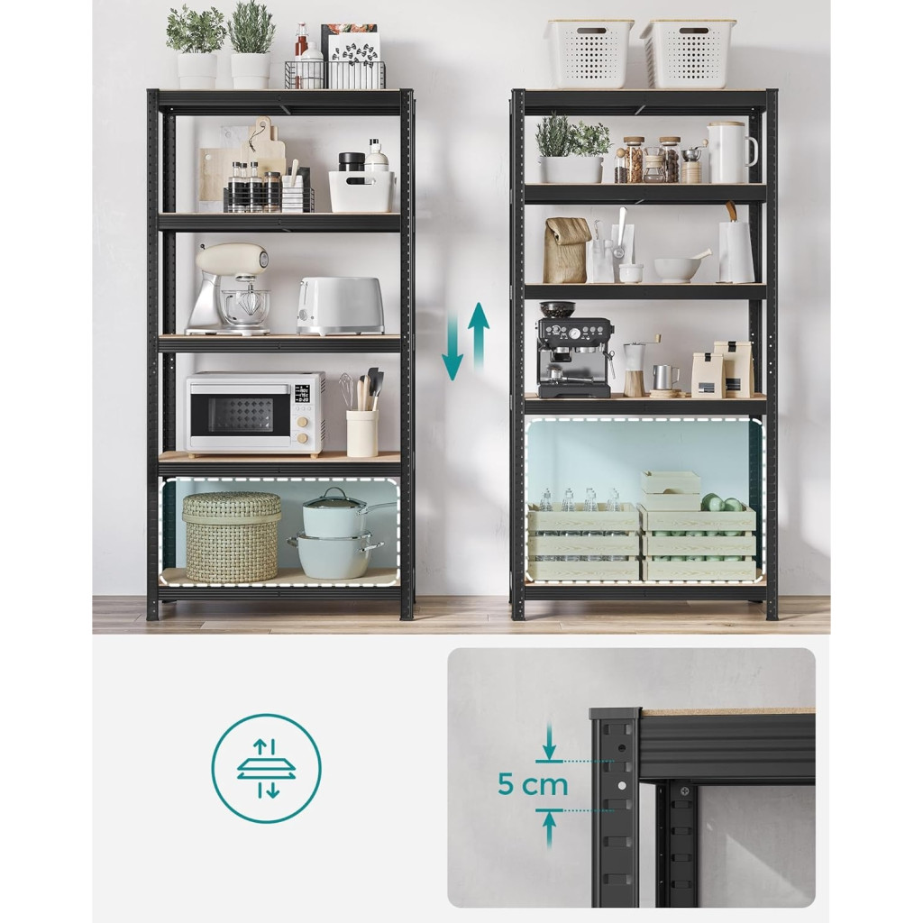 • Állítható polcok: A polcok 5 cm-es lépésekben állíthatók, lehetővé téve, hogy különböző méretű és formájú tárgyakat tároljon.
