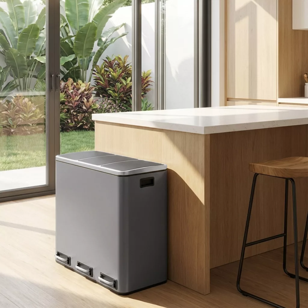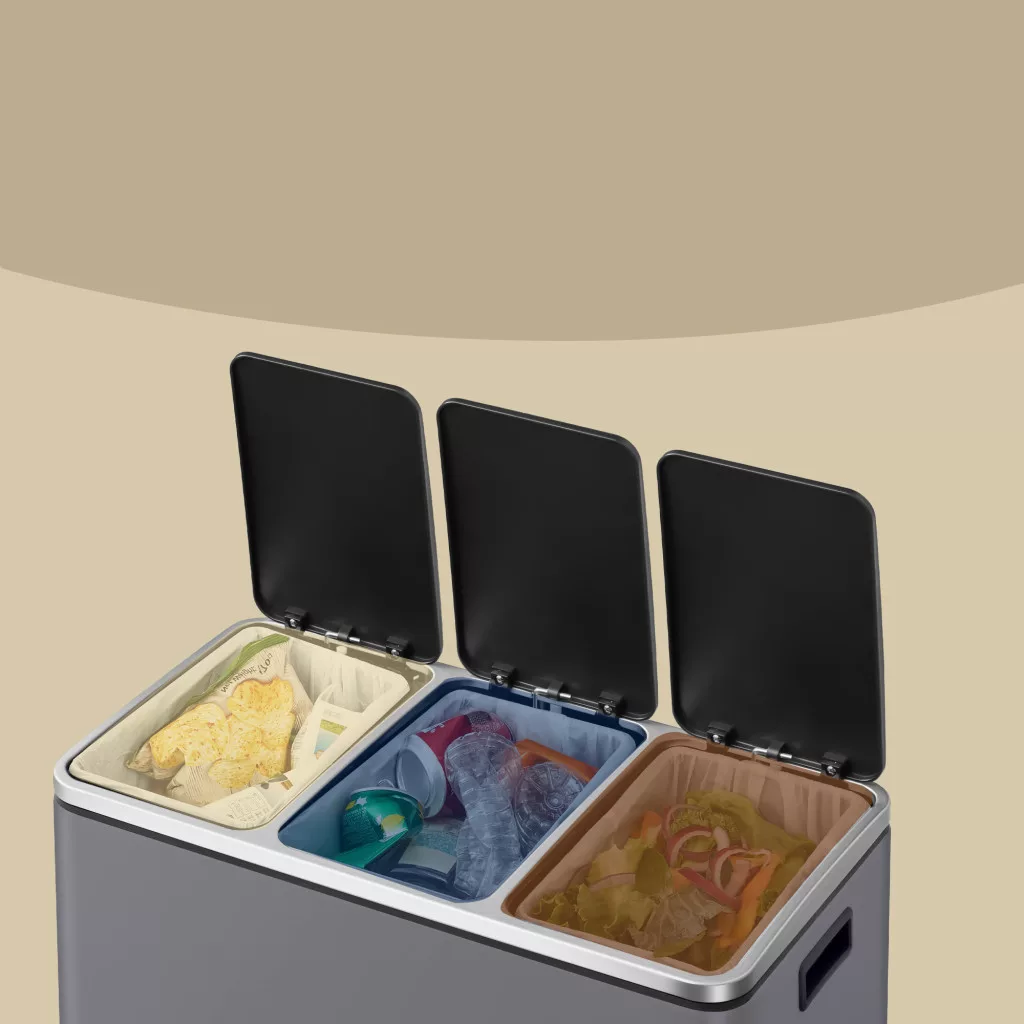 • Egyszerű hulladékgyűjtés: A három rekesz lehetővé teszi a különböző típusú hulladékok gyors és egyszerű szétválasztását.