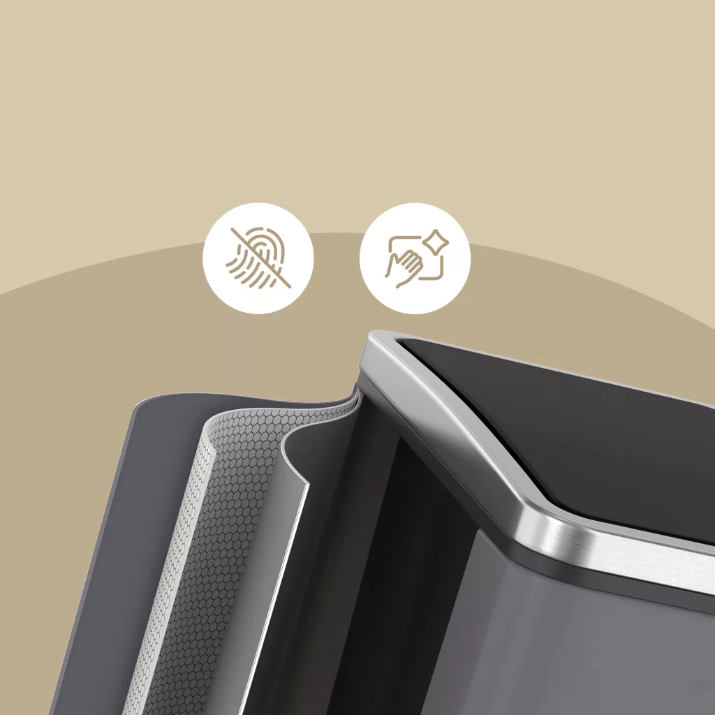 • Rozsdaálló anyag: A szemeteskuka acélból készült, így tartós és hosszú élettartamú, ráadásul könnyen tisztítható.