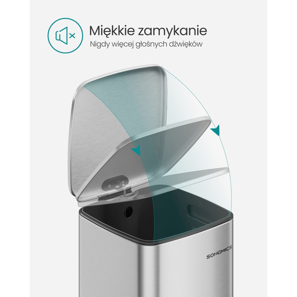 • Lágy záródás: A fedél lassú és csendes záródása biztosítja, hogy a használat során ne zavarja a környezetet, és hosszabb ideig nyitva tartható a könnyebb hulladékeltávolítás érdekében.