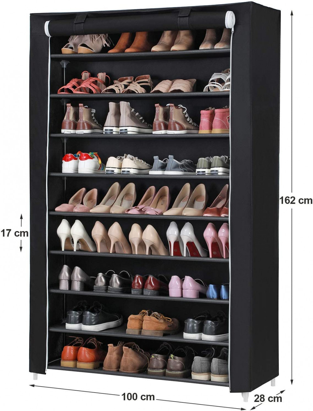 SONGMICS Szövet cipőtároló szekrény, fekete 100x28x162cm