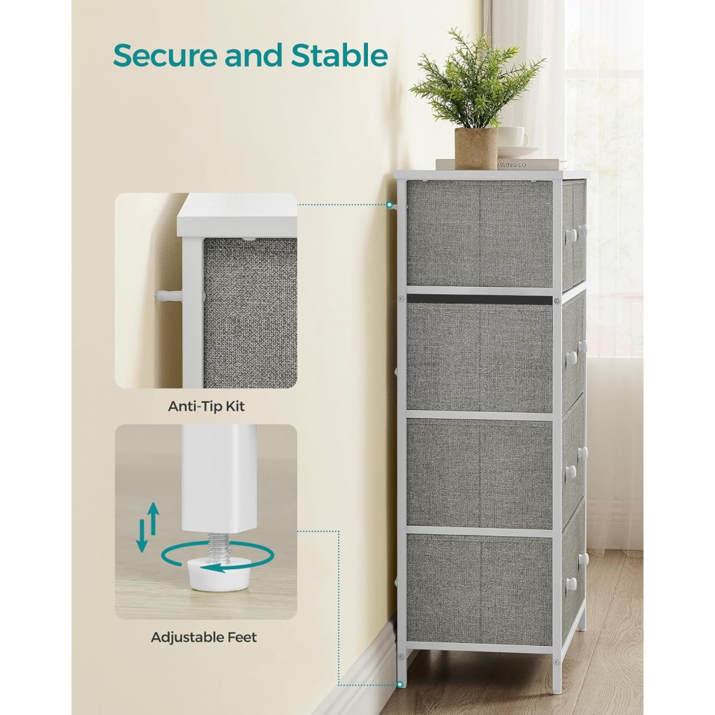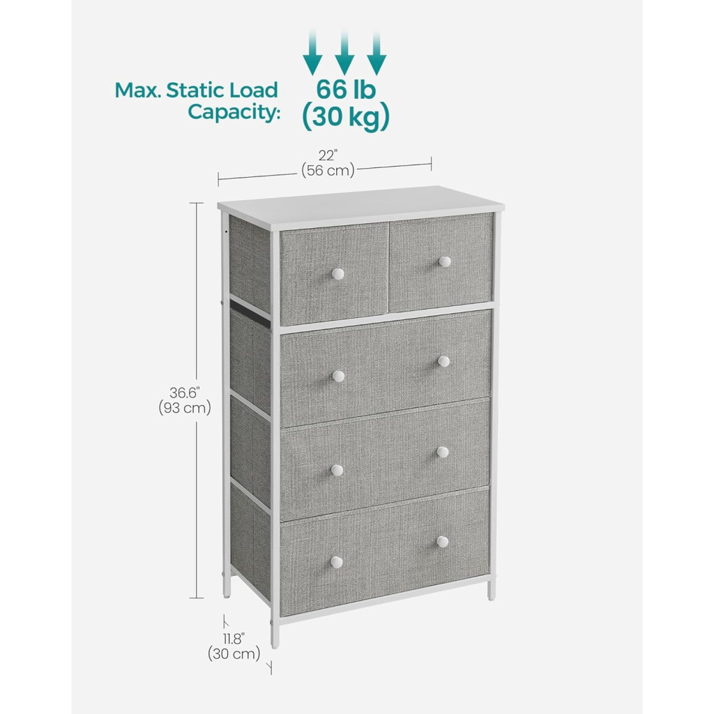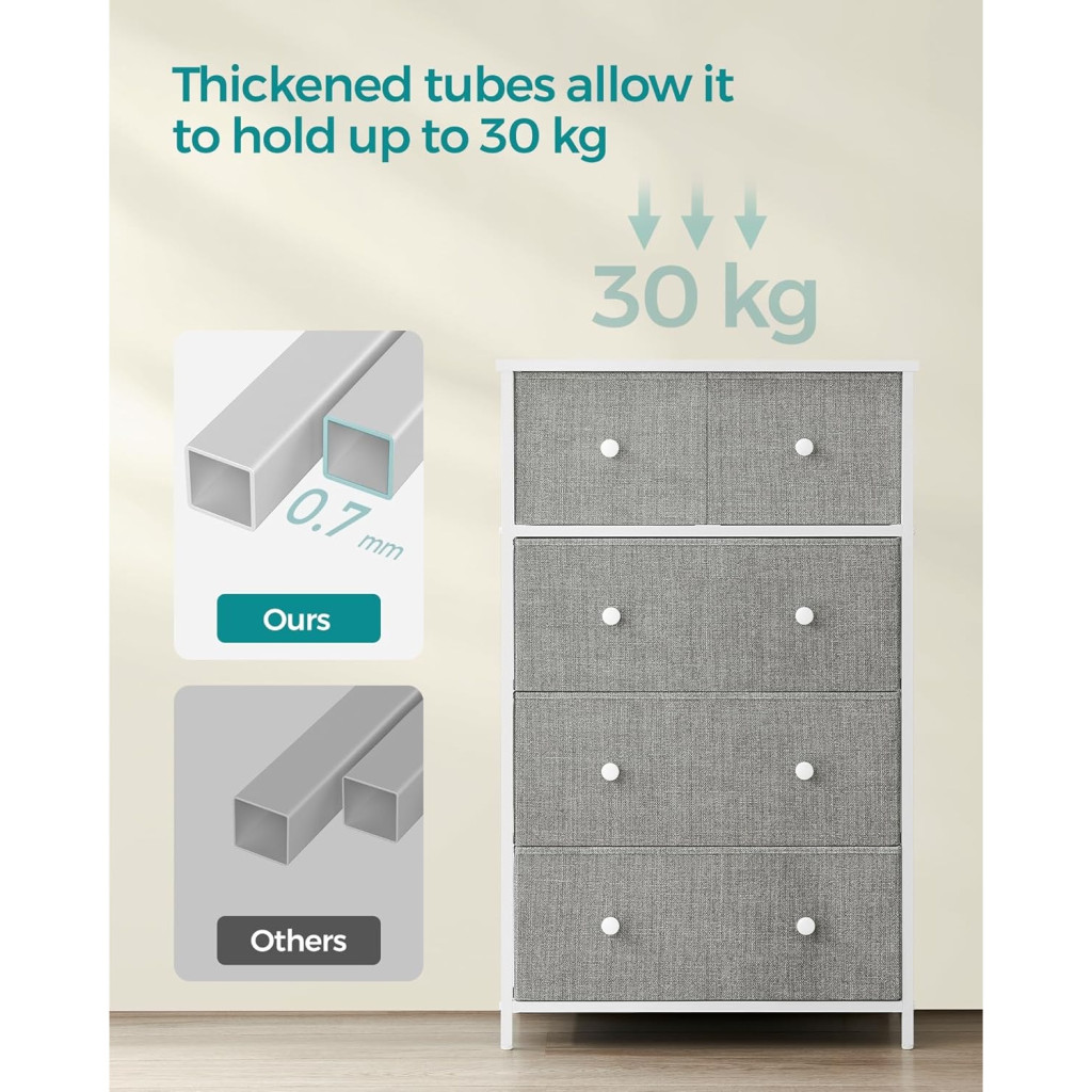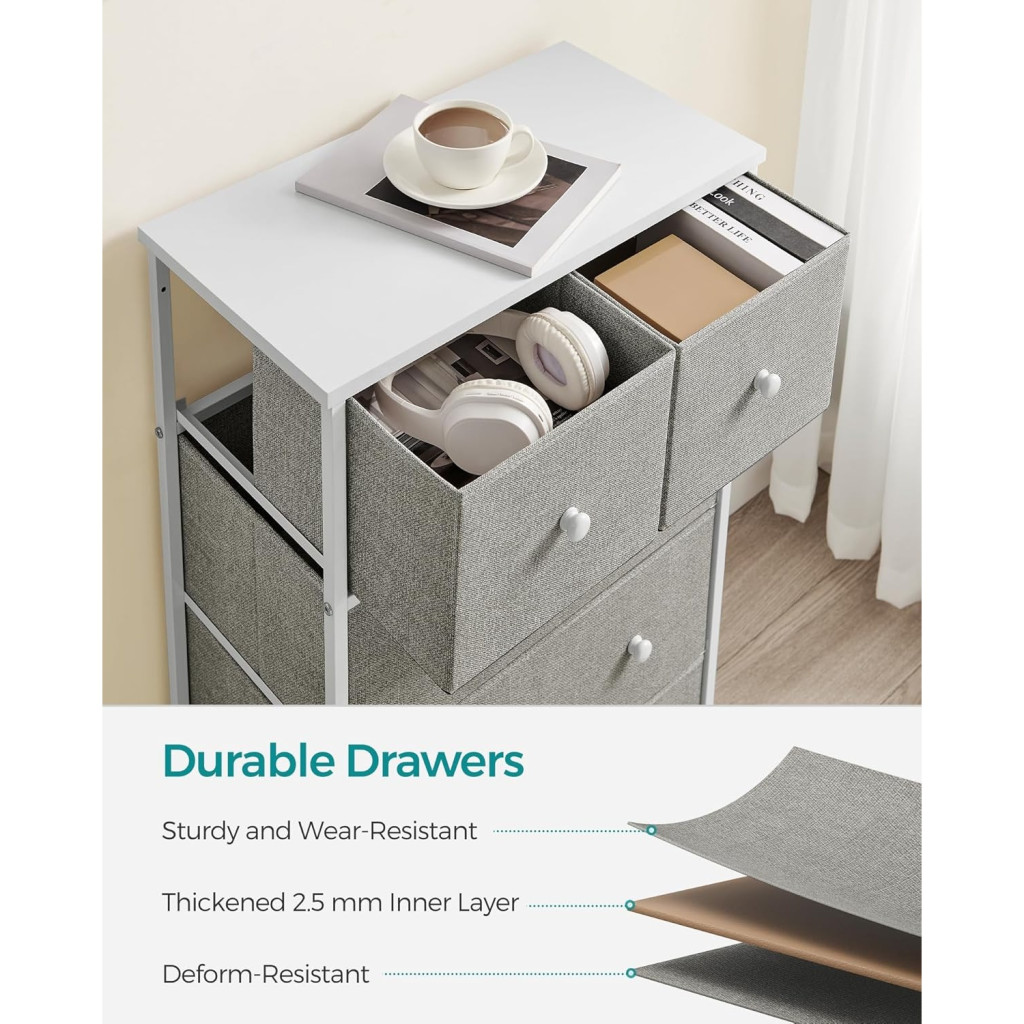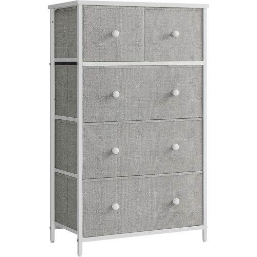 SONGMICS Fiókos Szekrény, Tároló Szekrény 5 Textil Fiókkal, Világosszürke/Fehér