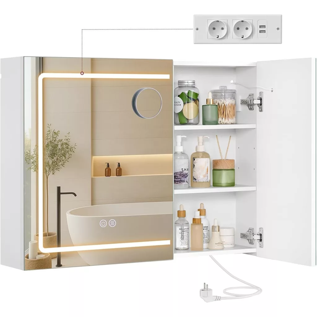 Tükörszekrény, világítással, fali, párátlanító funkcióval, fehér