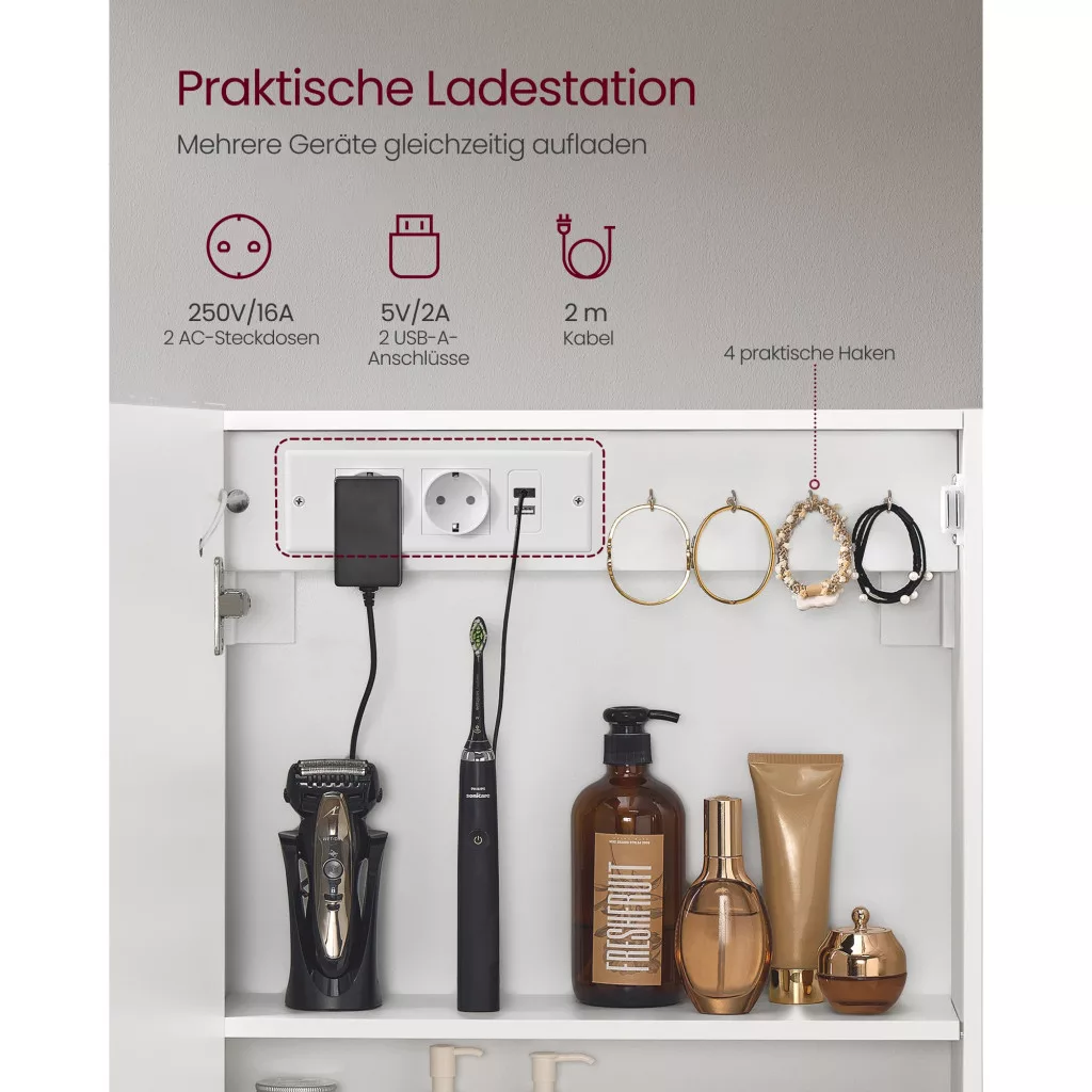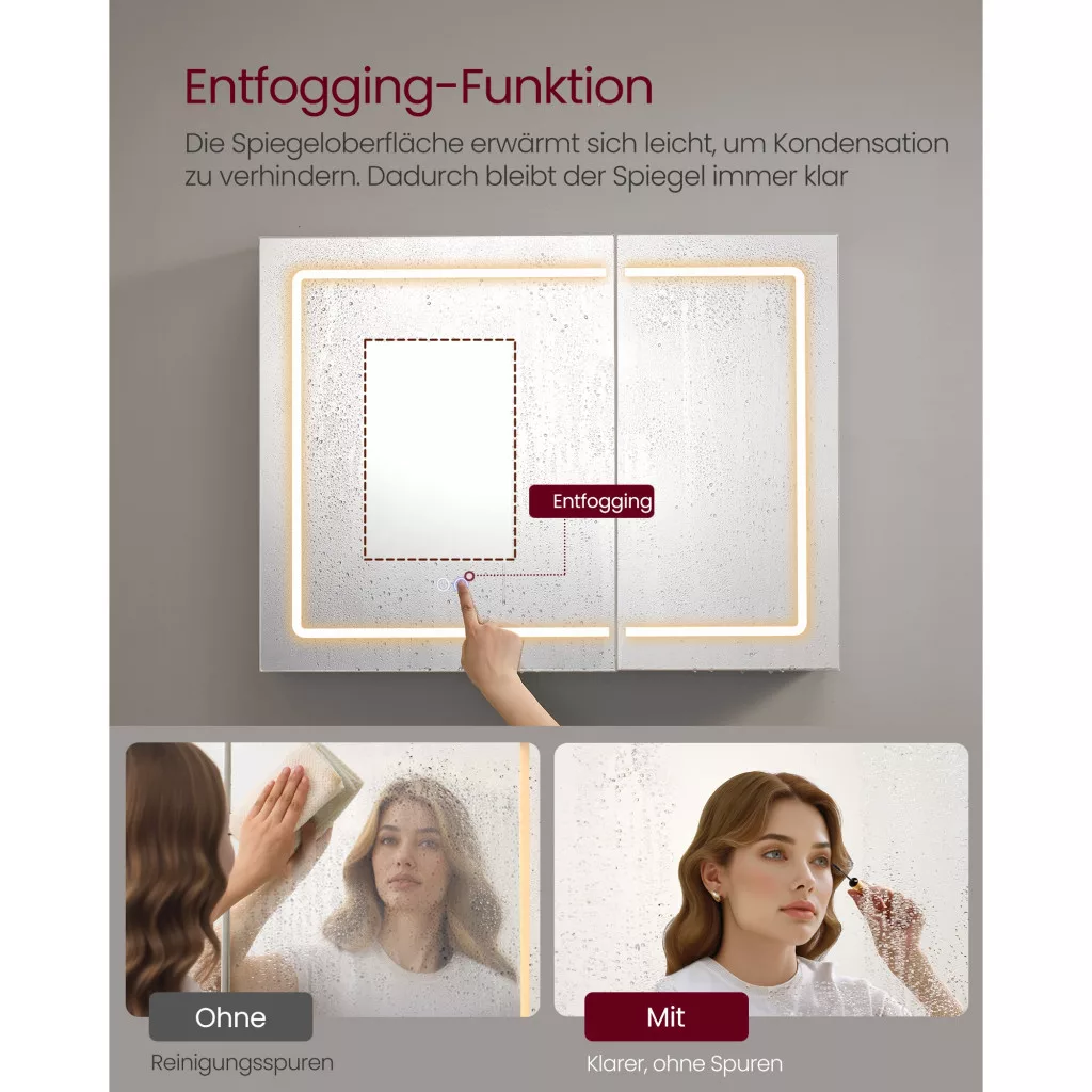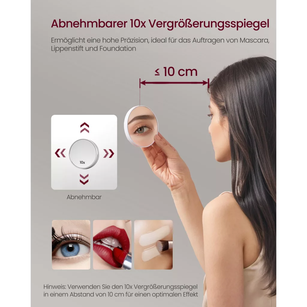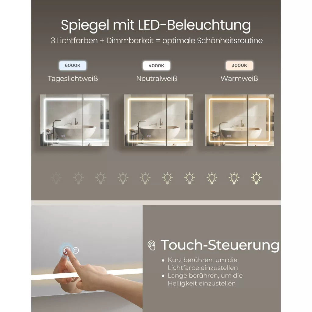 • Magnifikáló tükör: A faliszekrény tartalmaz egy levehető 10x-es nagyító tükröt, amely megkönnyíti a sminkelést vagy a borotválkozást.