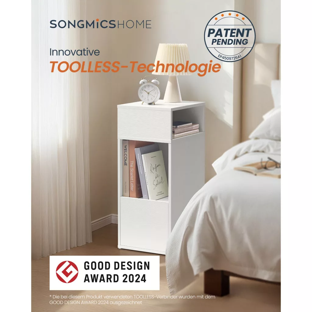Válassza a SONGMICS HOME márkát, és tapasztalja meg a minőséget és a praktikusságot egy elegáns éjjeli szekrény formájában!